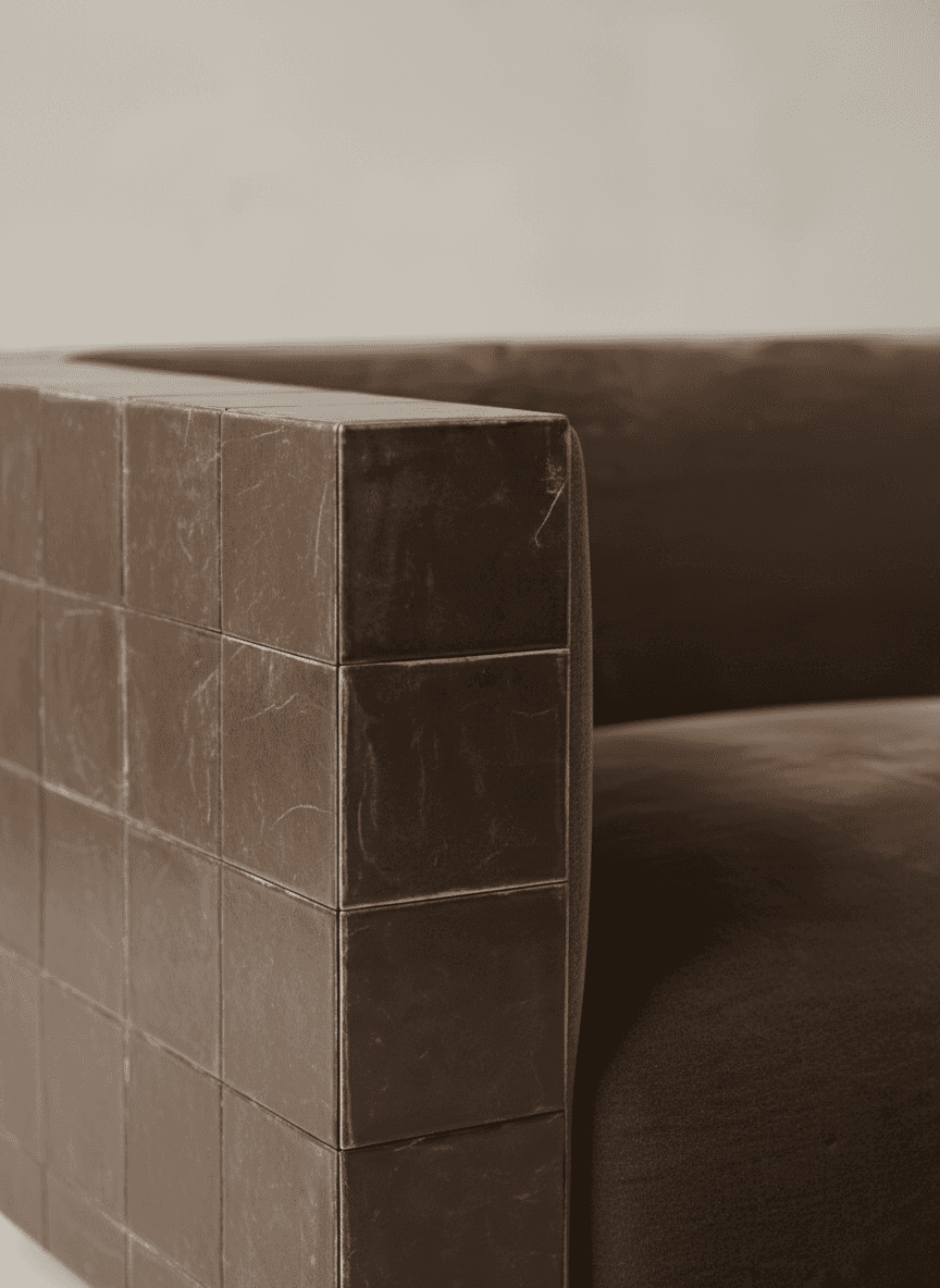 The ARDEN Collection unites leather and tile, the supple and the structured, in a contemporary meditation on mid-century modernism. Inspired by the tiled façades and leather-clad lounges of the 1960s, Arden balances architectural precision with tactile informality. Its pieces recall the sculptural calm of the era while drawing on Loewe’s craftsmanship and Bottega Veneta’s material sensuality. A dialogue between luxury and comfort, public and private, Arden reimagines mid-century finishes through a modern lens, where furniture becomes architecture and texture becomes language.