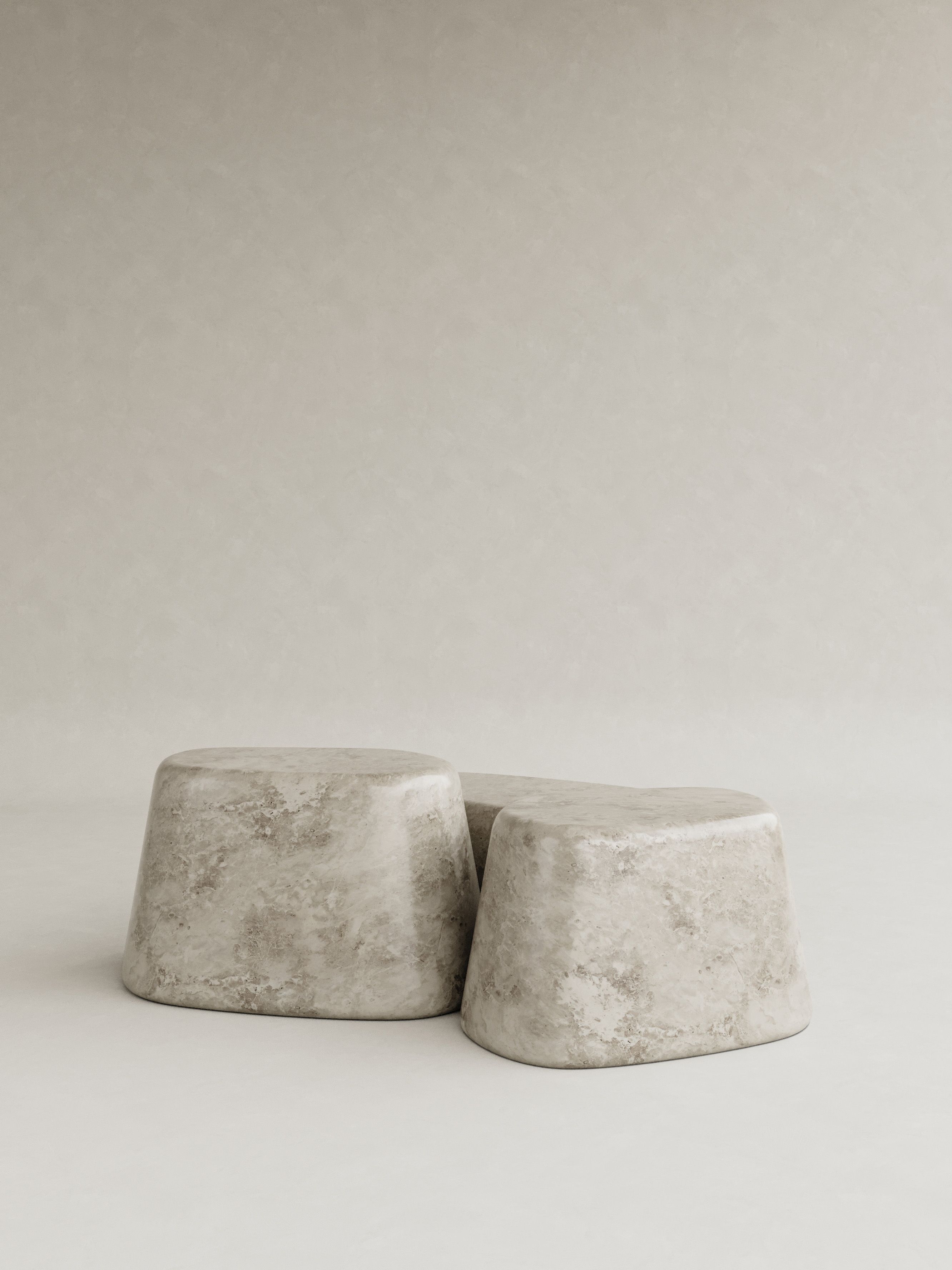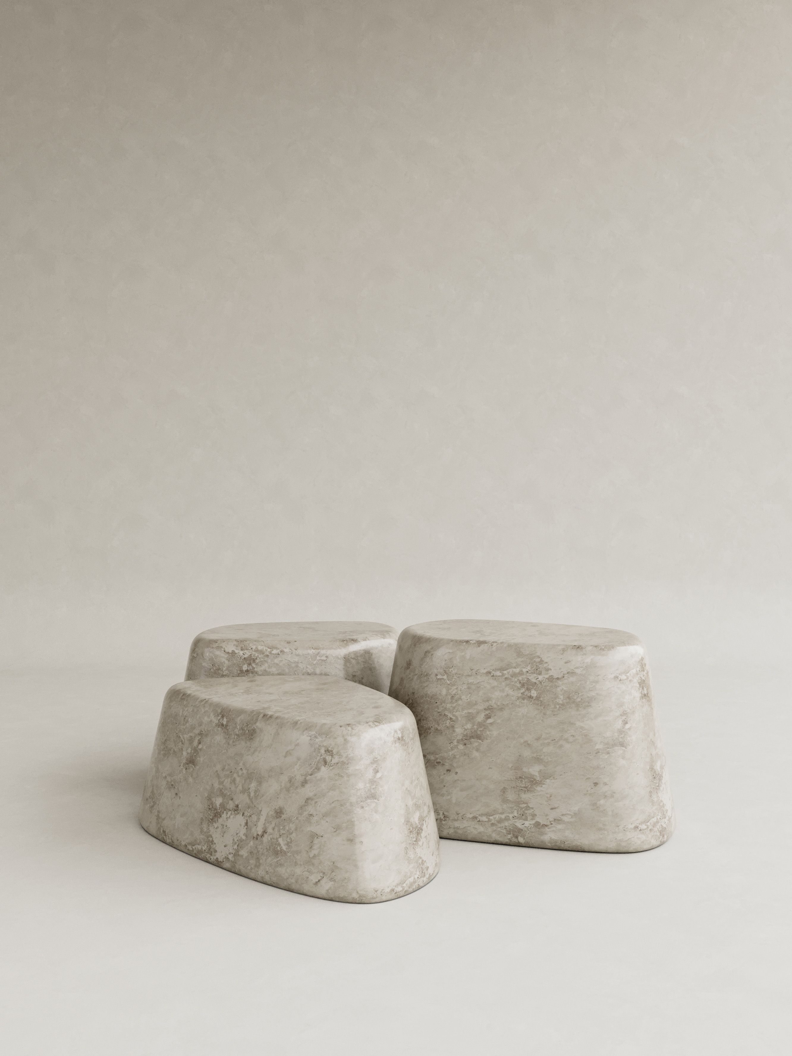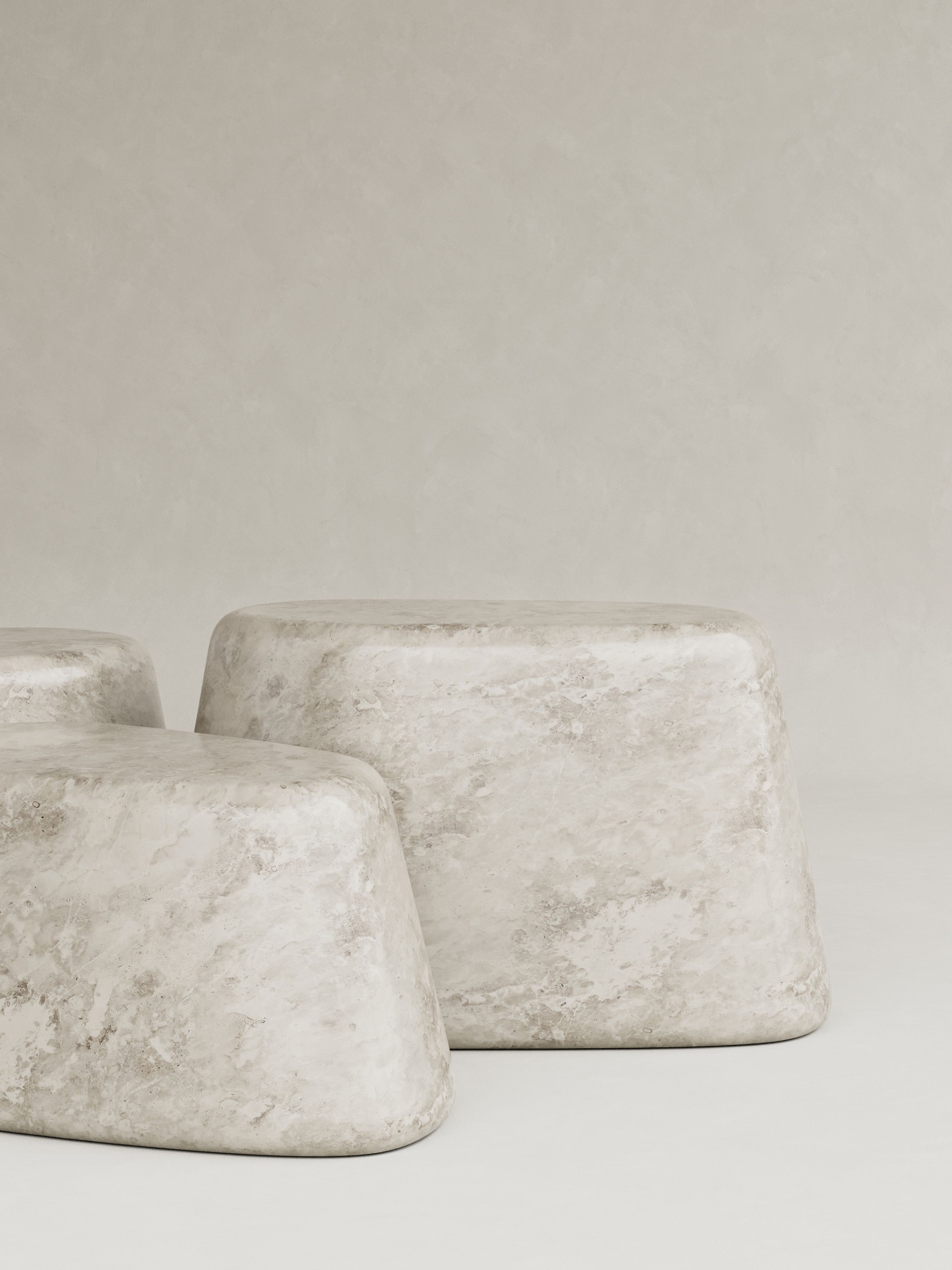 AURA emerges from the quiet power of natural materials—wood, textiles, and stone—distilled into sculptural forms that feel both grounded and weightless. Each piece shares a language of rounded volumes, hand-carved textures, and monolithic bases that echo geological formations shaped over time. Soft curves, tactile surfaces, and floating silhouettes give the collection its namesake presence: an aura that gently radiates calm, strength, and timelessness. United by this recurring sculptural gesture, AURA embodies a contemporary yet enduring sensibility, offering furniture that transcends function to become lasting expressions of nature’s beauty and material honesty.