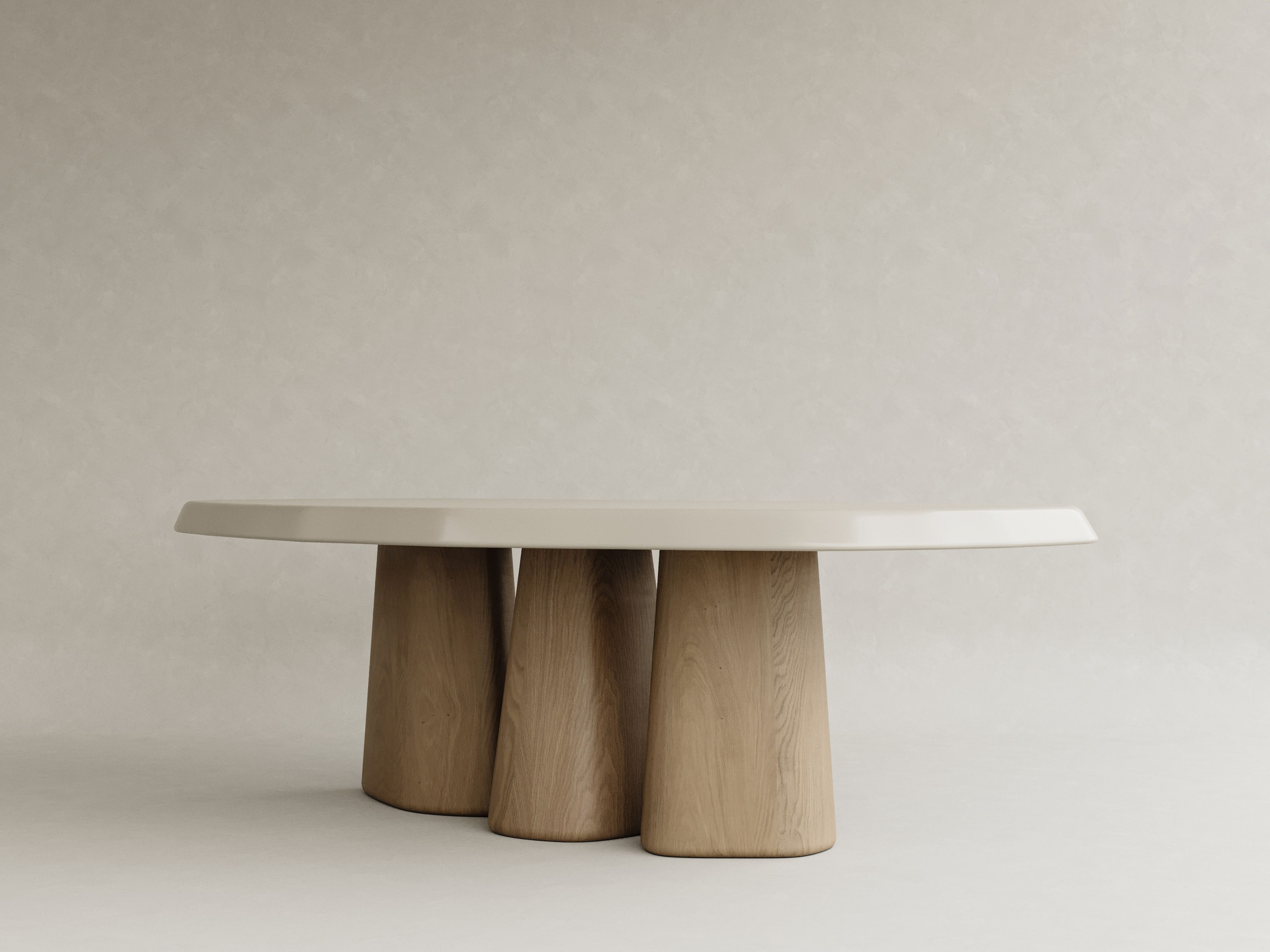 AURA emerges from the quiet power of natural materials—wood, textiles, and stone—distilled into sculptural forms that feel both grounded and weightless. Each piece shares a language of rounded volumes, hand-carved textures, and monolithic bases that echo geological formations shaped over time. Soft curves, tactile surfaces, and floating silhouettes give the collection its namesake presence: an aura that gently radiates calm, strength, and timelessness. United by this recurring sculptural gesture, AURA embodies a contemporary yet enduring sensibility, offering furniture that transcends function to become lasting expressions of nature’s beauty and material honesty.