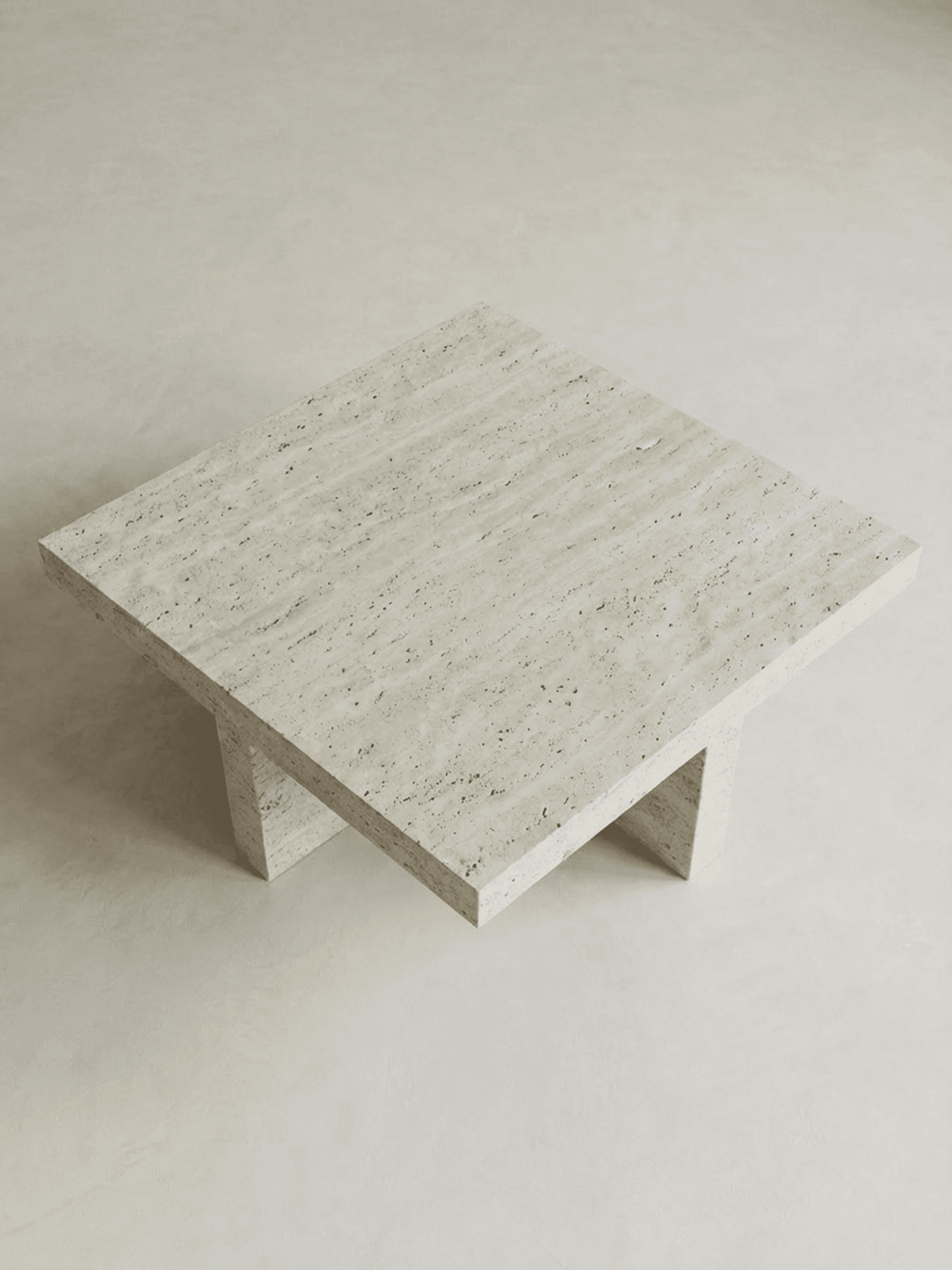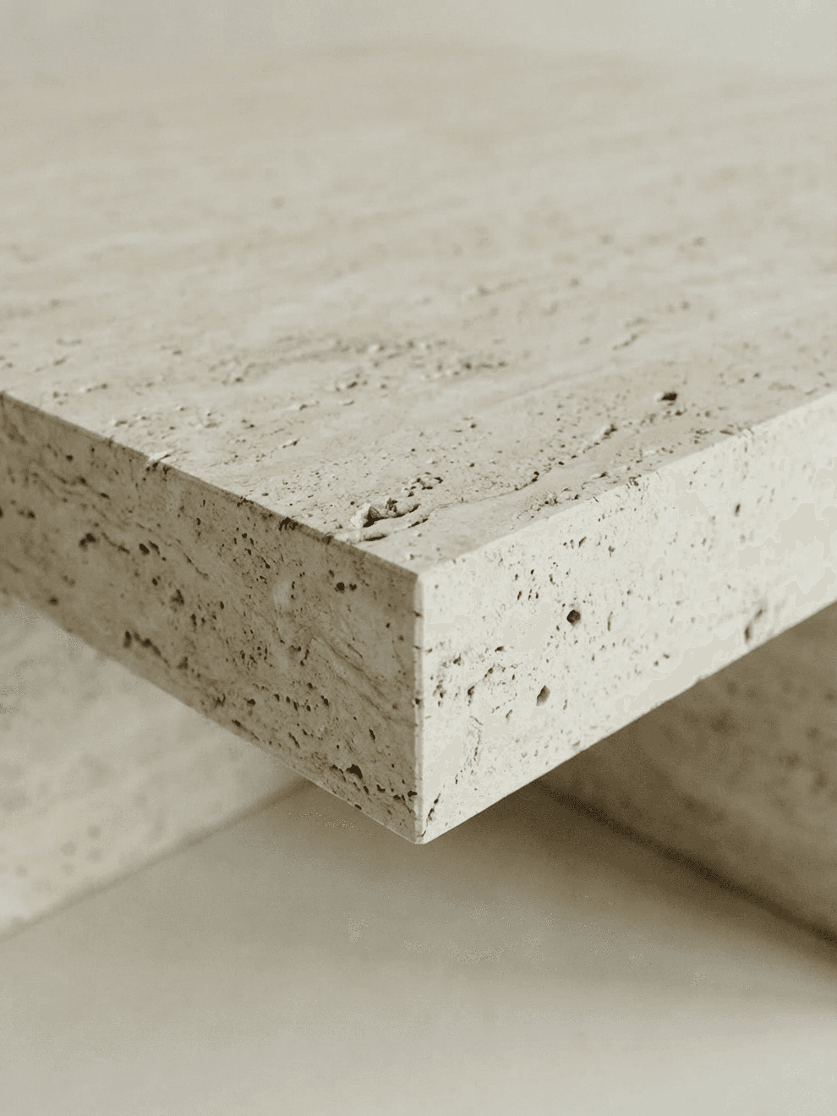 LUCA is defined by contrast and clarity. The collection brings together travertine and bleached white oak, pairing the permanence of stone with the warmth of timber. Its forms draw from the lineage of Italian modular seating, referencing the expansive, adaptable sofas championed by designers such as Bellini. The sofas are composed with intention: curved bolsters and soft upholstery set against sharp-edged plinths that ground each piece with architectural precision. This interplay between softness and structure gives LUCA its character, sculptural yet comfortable, refined yet inviting. Travertine anchors the collection, lending weight and durability while allowing the pieces to move fluidly between indoor and outdoor settings. Whether placed in a living room, terrace, or courtyard, LUCA is designed to hold space with confidence. Contemporary in expression and enduring in construction, LUCA is furniture shaped by Italian modernism and material integrity, created for versatile, considered living.