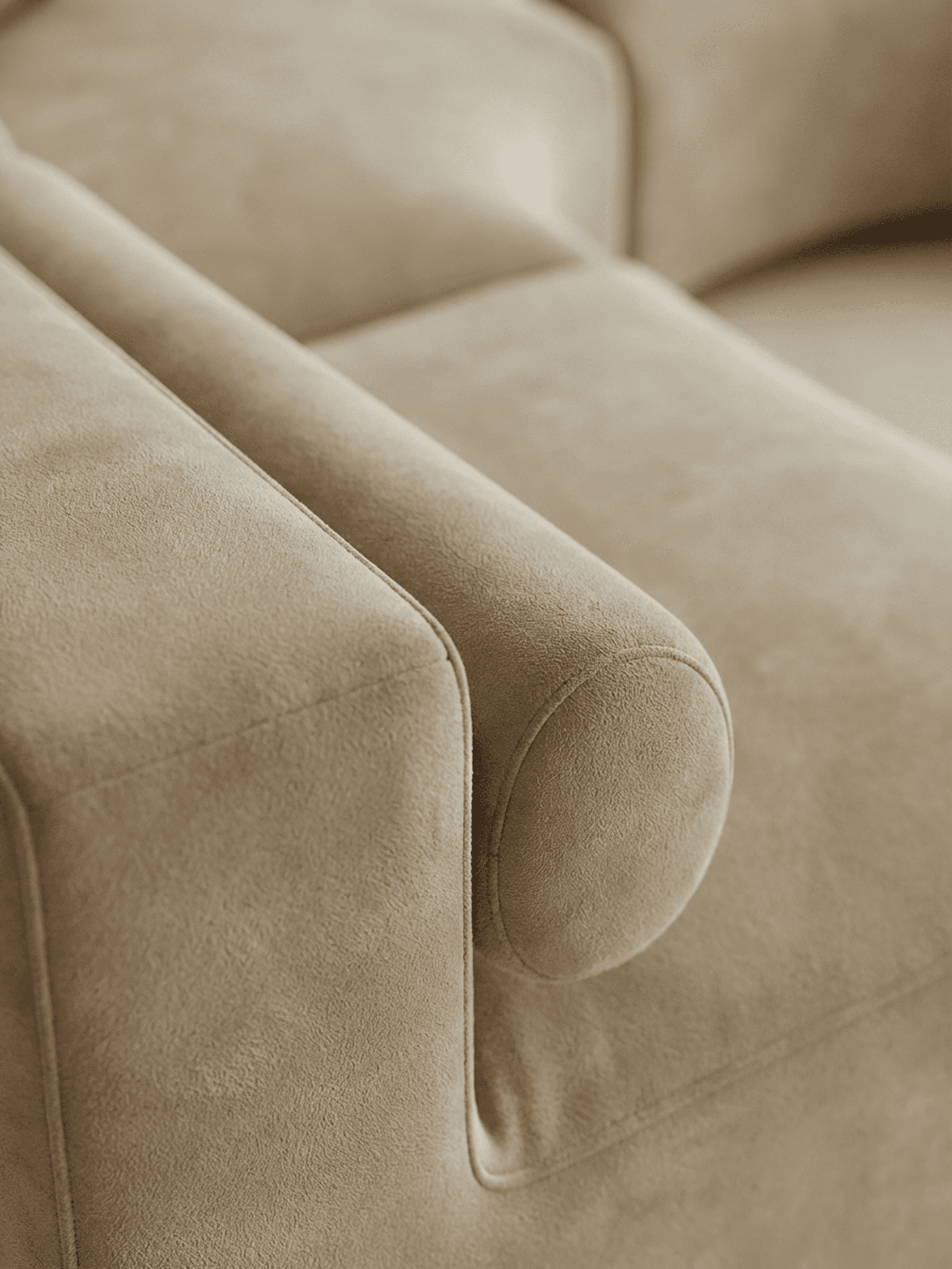 LUCA is defined by contrast and clarity. The collection brings together travertine and bleached white oak, pairing the permanence of stone with the warmth of timber. Its forms draw from the lineage of Italian modular seating, referencing the expansive, adaptable sofas championed by designers such as Bellini. The sofas are composed with intention: curved bolsters and soft upholstery set against sharp-edged plinths that ground each piece with architectural precision. This interplay between softness and structure gives LUCA its character, sculptural yet comfortable, refined yet inviting. Travertine anchors the collection, lending weight and durability while allowing the pieces to move fluidly between indoor and outdoor settings. Whether placed in a living room, terrace, or courtyard, LUCA is designed to hold space with confidence. Contemporary in expression and enduring in construction, LUCA is furniture shaped by Italian modernism and material integrity, created for versatile, considered living.