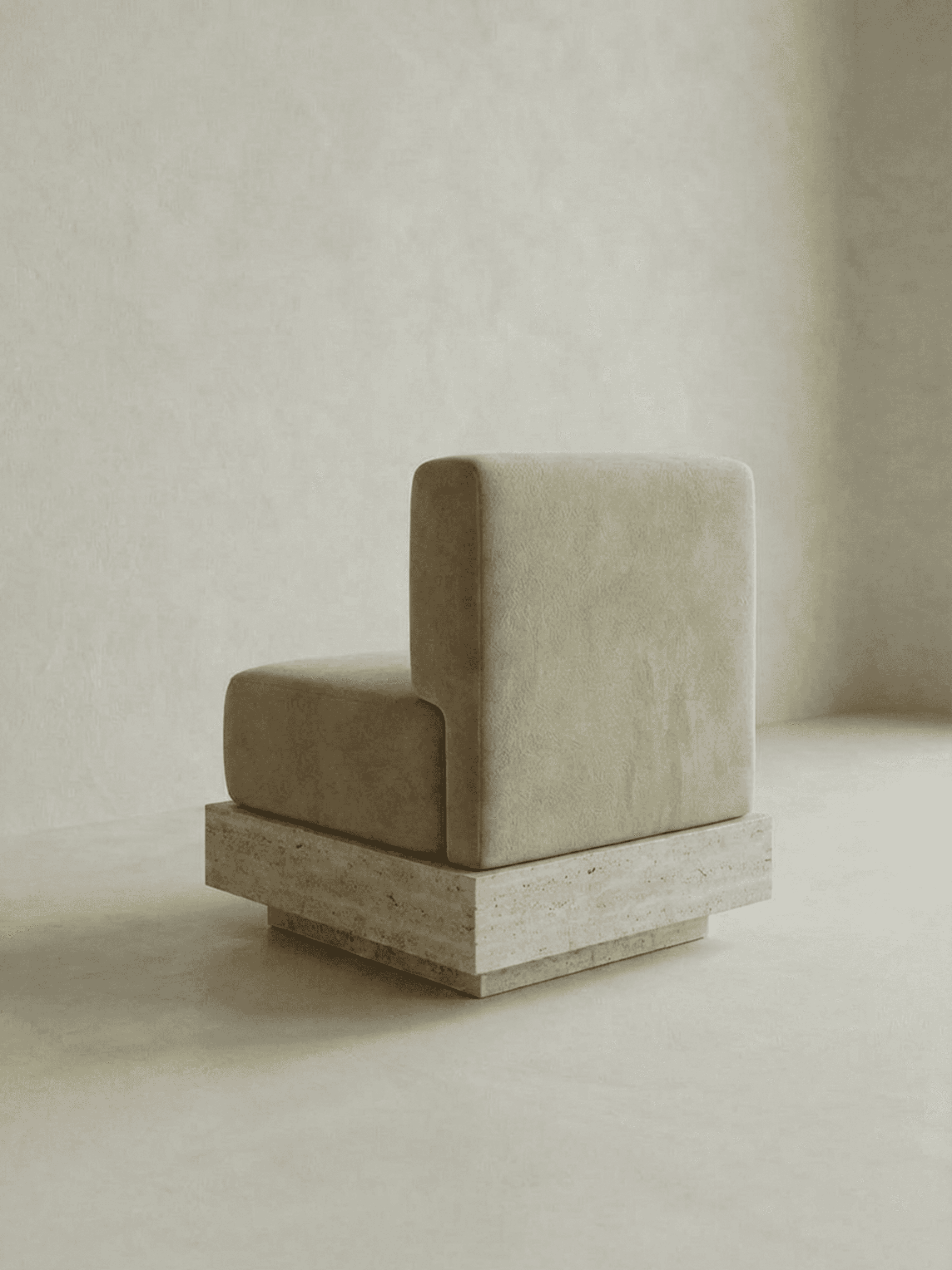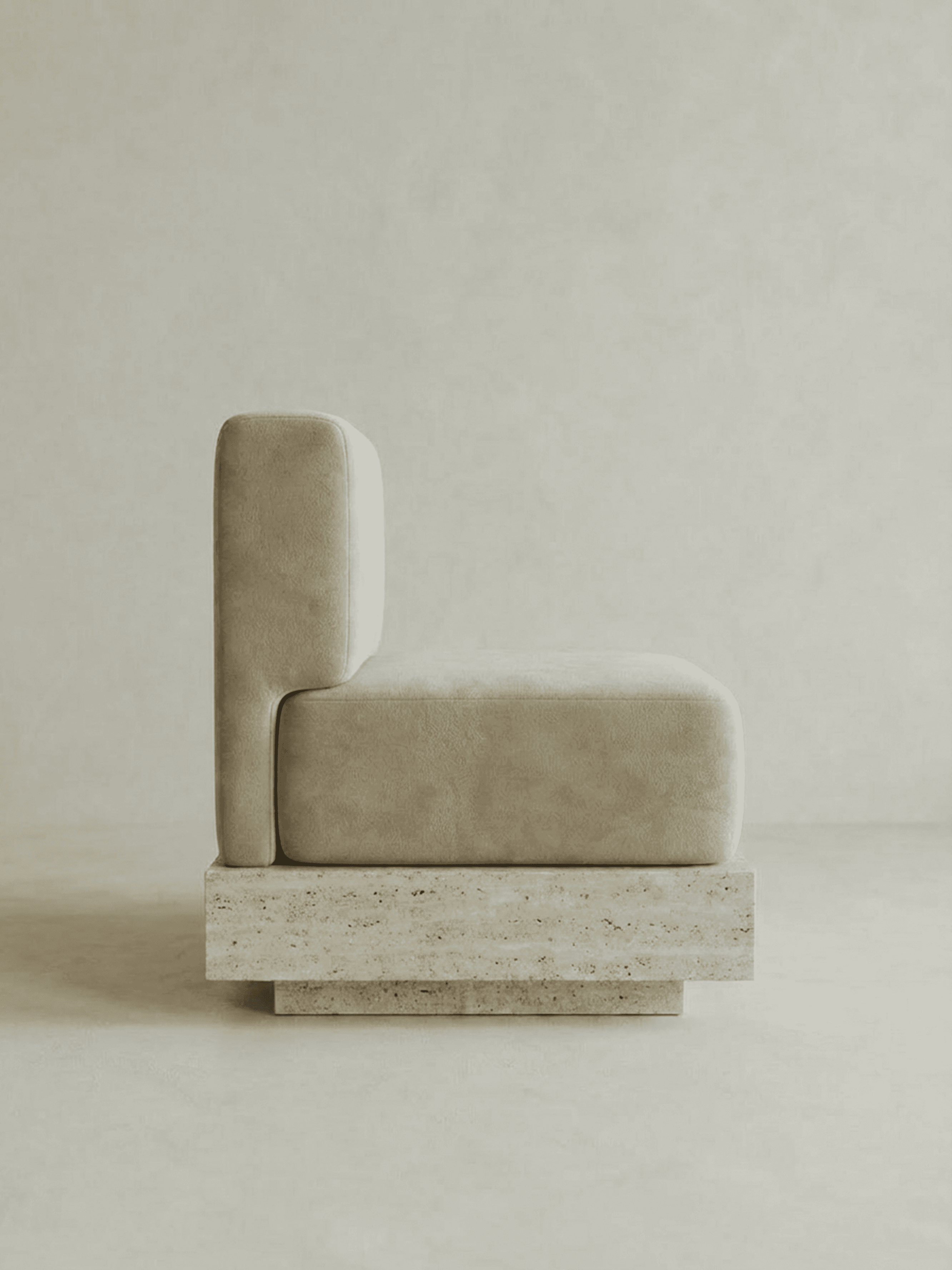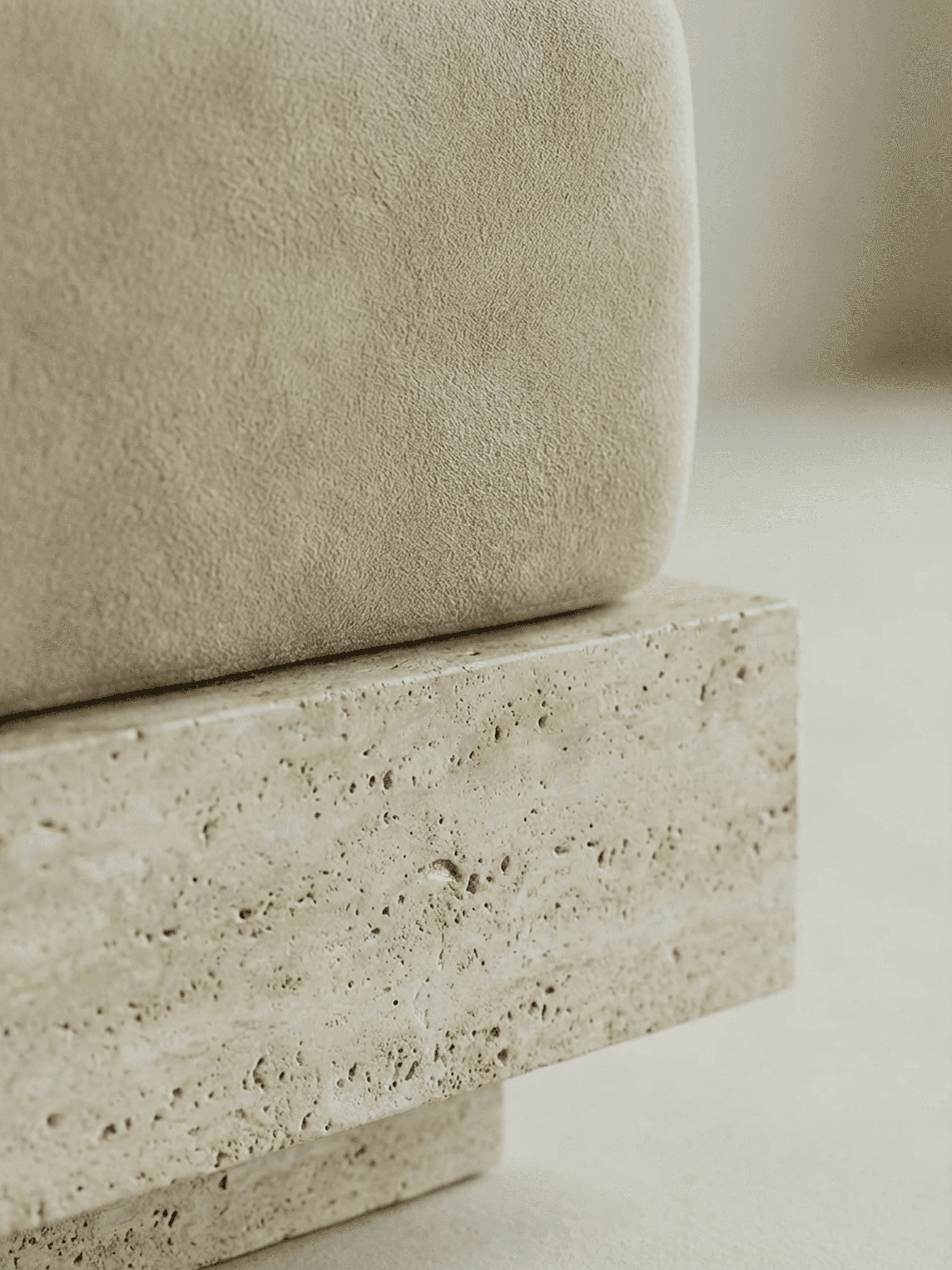 LUCA is defined by contrast and clarity. The collection brings together travertine and bleached white oak, pairing the permanence of stone with the warmth of timber. Its forms draw from the lineage of Italian modular seating, referencing the expansive, adaptable sofas championed by designers such as Bellini. The sofas are composed with intention: curved bolsters and soft upholstery set against sharp-edged plinths that ground each piece with architectural precision. This interplay between softness and structure gives LUCA its character, sculptural yet comfortable, refined yet inviting. Travertine anchors the collection, lending weight and durability while allowing the pieces to move fluidly between indoor and outdoor settings. Whether placed in a living room, terrace, or courtyard, LUCA is designed to hold space with confidence. Contemporary in expression and enduring in construction, LUCA is furniture shaped by Italian modernism and material integrity, created for versatile, considered living.