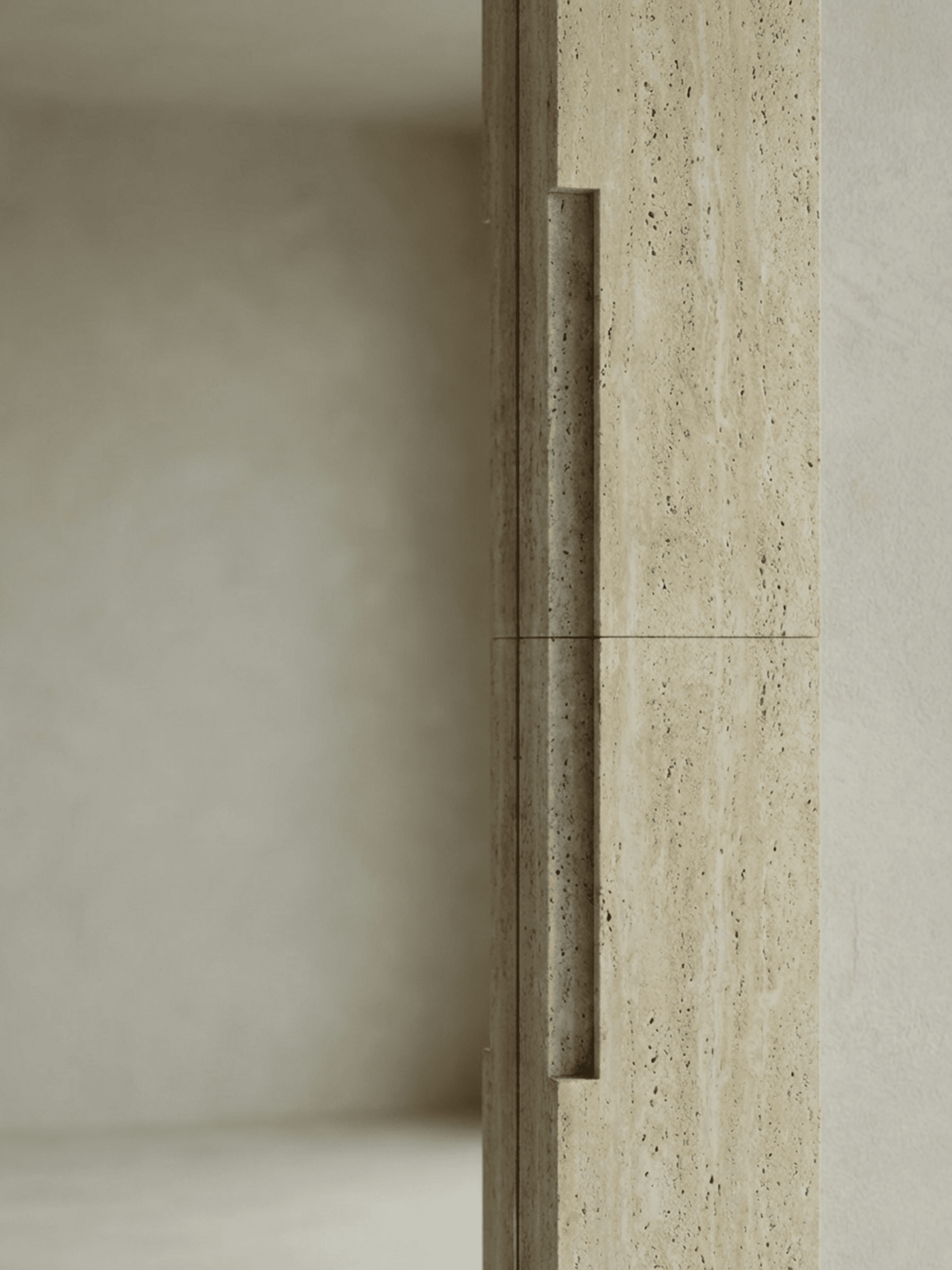 LUCA is defined by contrast and clarity. The collection brings together travertine and bleached white oak, pairing the permanence of stone with the warmth of timber. Its forms draw from the lineage of Italian modular seating, referencing the expansive, adaptable sofas championed by designers such as Bellini. The sofas are composed with intention: curved bolsters and soft upholstery set against sharp-edged plinths that ground each piece with architectural precision. This interplay between softness and structure gives LUCA its character, sculptural yet comfortable, refined yet inviting. Travertine anchors the collection, lending weight and durability while allowing the pieces to move fluidly between indoor and outdoor settings. Whether placed in a living room, terrace, or courtyard, LUCA is designed to hold space with confidence. Contemporary in expression and enduring in construction, LUCA is furniture shaped by Italian modernism and material integrity, created for versatile, considered living.