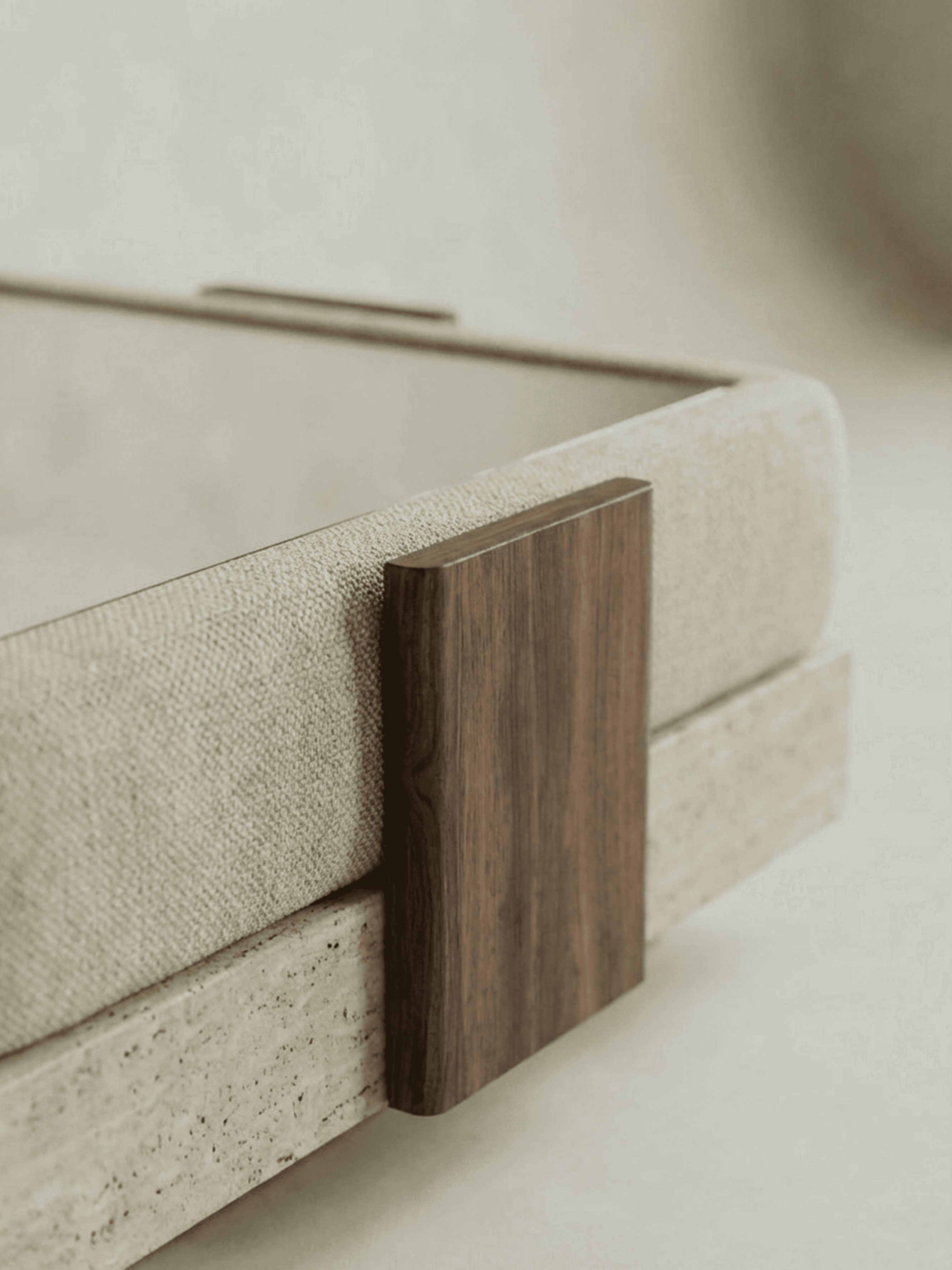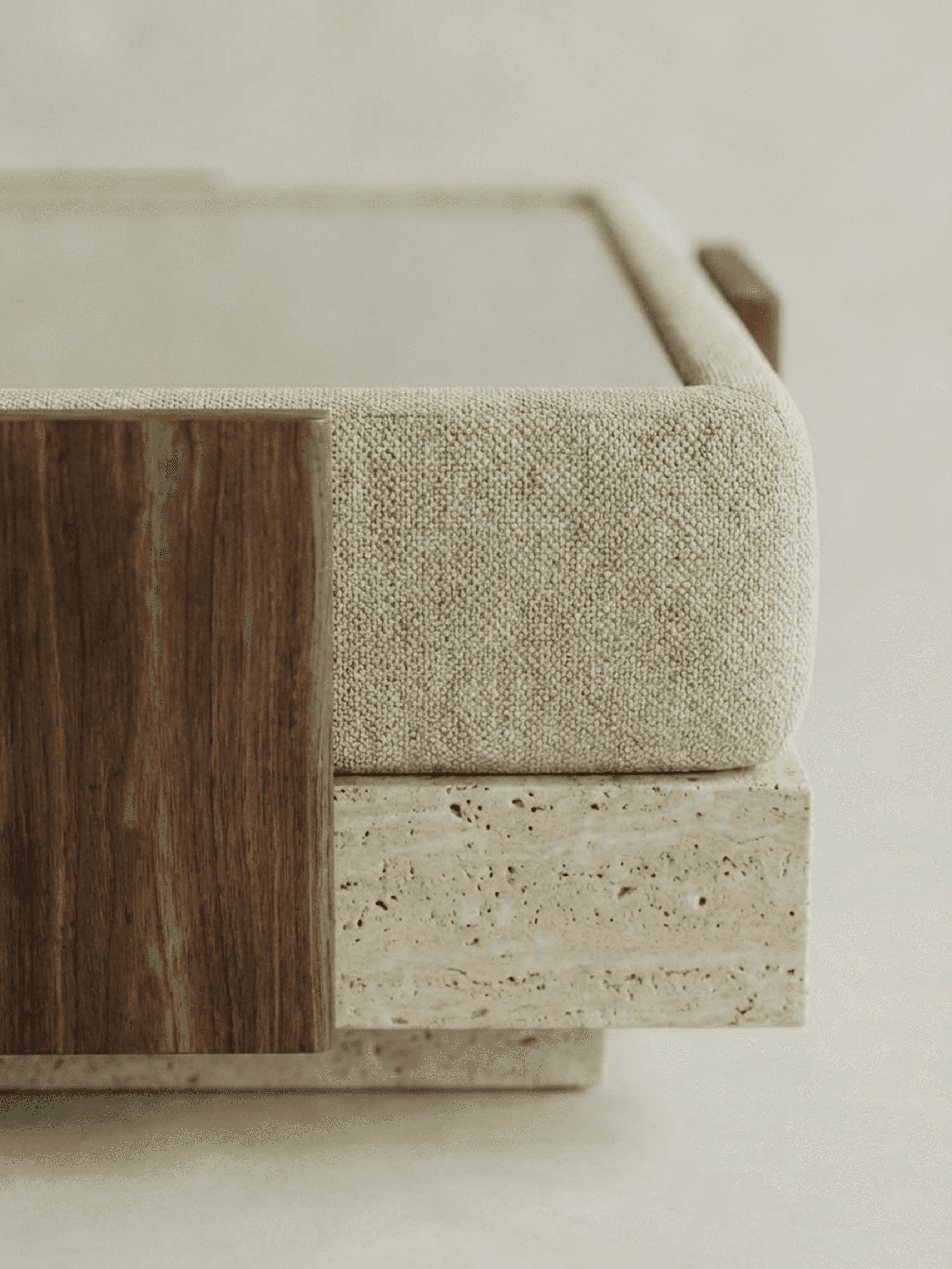 LUCA is defined by contrast and clarity. The collection brings together travertine and bleached white oak, pairing the permanence of stone with the warmth of timber. Its forms draw from the lineage of Italian modular seating, referencing the expansive, adaptable sofas championed by designers such as Bellini. The sofas are composed with intention: curved bolsters and soft upholstery set against sharp-edged plinths that ground each piece with architectural precision. This interplay between softness and structure gives LUCA its character, sculptural yet comfortable, refined yet inviting. Travertine anchors the collection, lending weight and durability while allowing the pieces to move fluidly between indoor and outdoor settings. Whether placed in a living room, terrace, or courtyard, LUCA is designed to hold space with confidence. Contemporary in expression and enduring in construction, LUCA is furniture shaped by Italian modernism and material integrity, created for versatile, considered living.