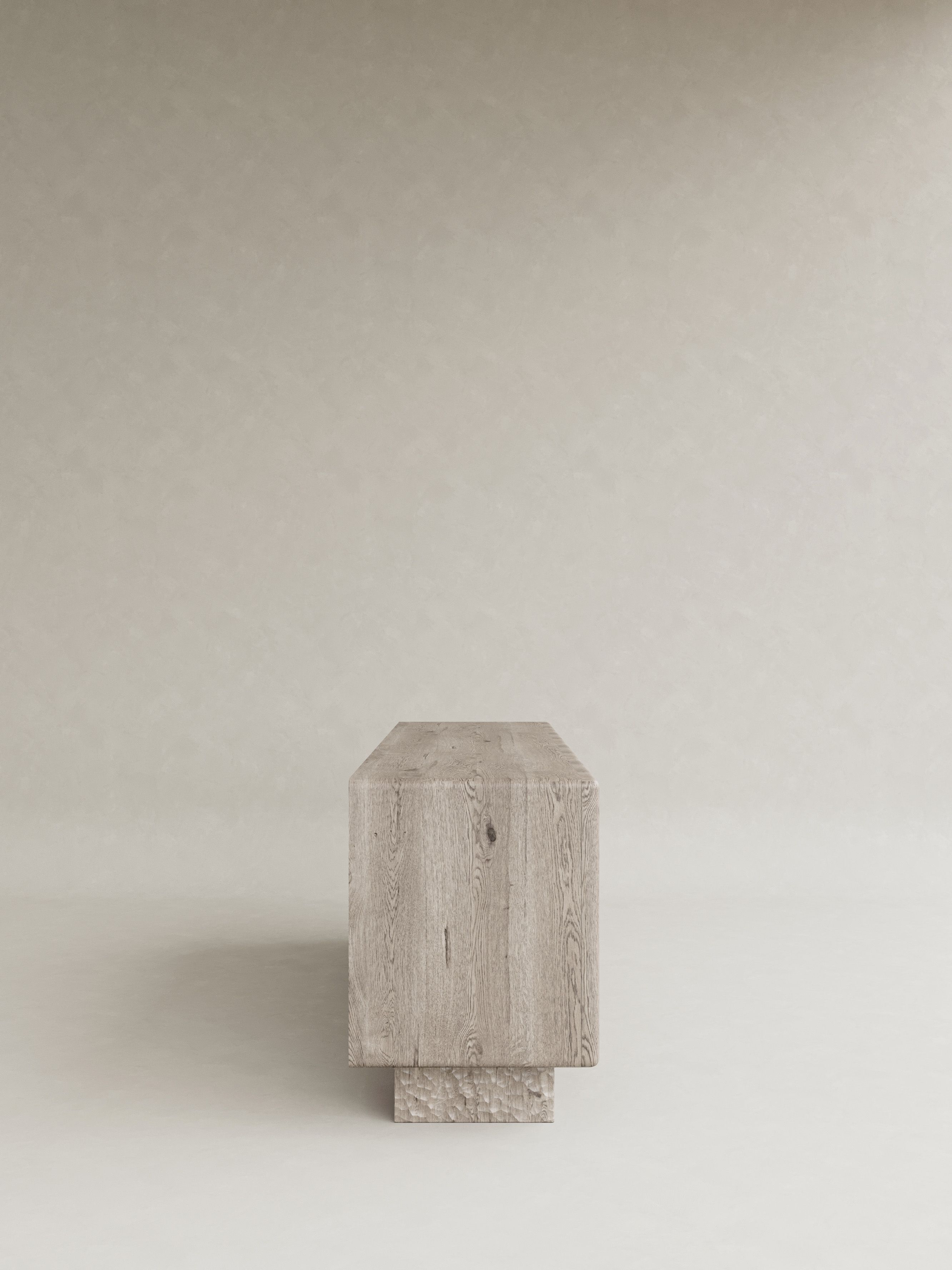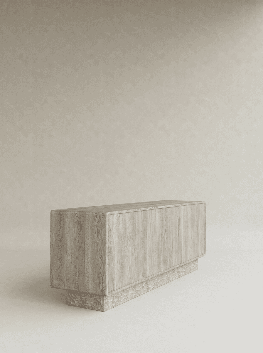 LUME is a sculptural dialogue between wood and tile, inspired by the quiet glow of light emerging from natural elements. Defined by vertical tile rhythms that catch and reflect light, each piece transforms the surface into atmosphere, blending the grounded warmth of wood with the luminous texture of glazed ceramic. This interplay creates a living presence—both solid and radiant—where minimal forms become poetic expressions of balance, timelessness, and material harmony.