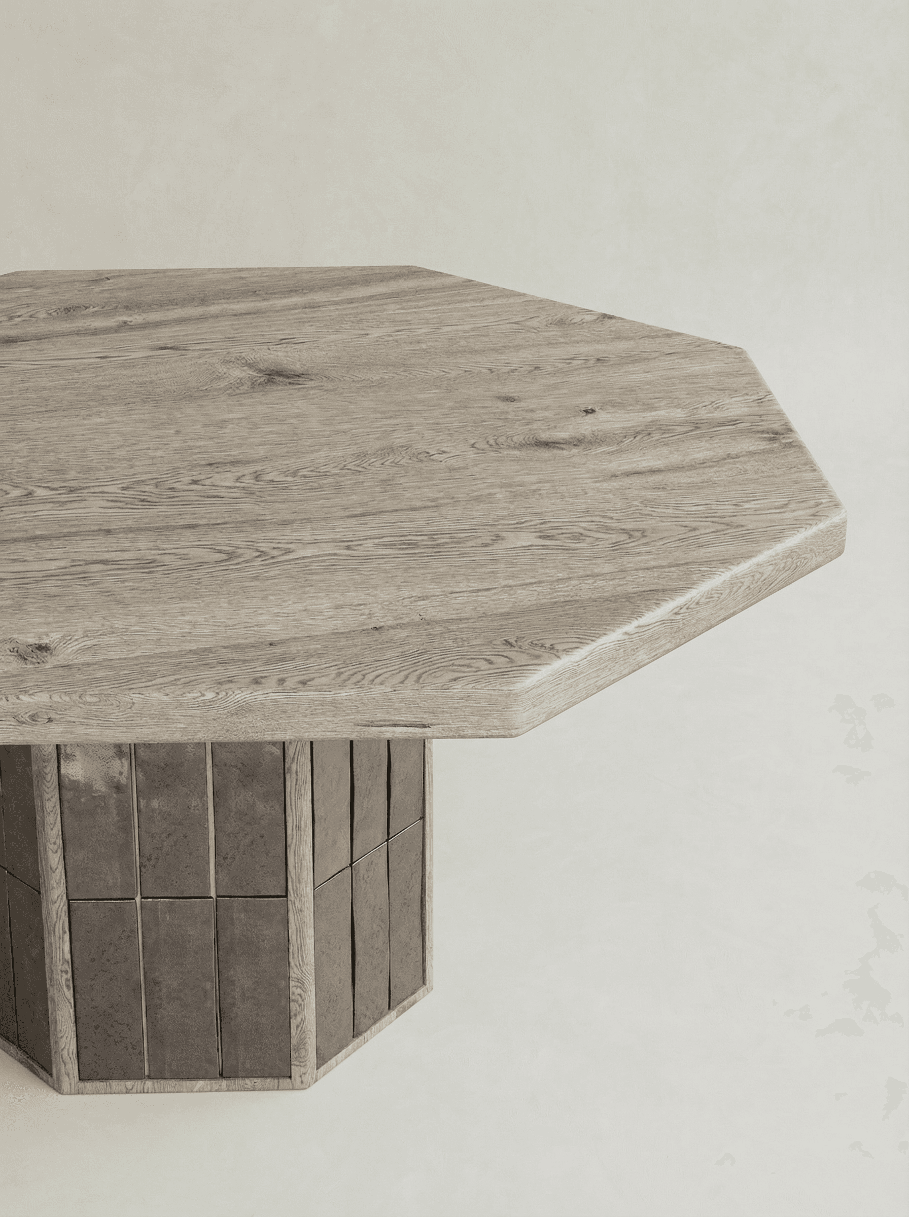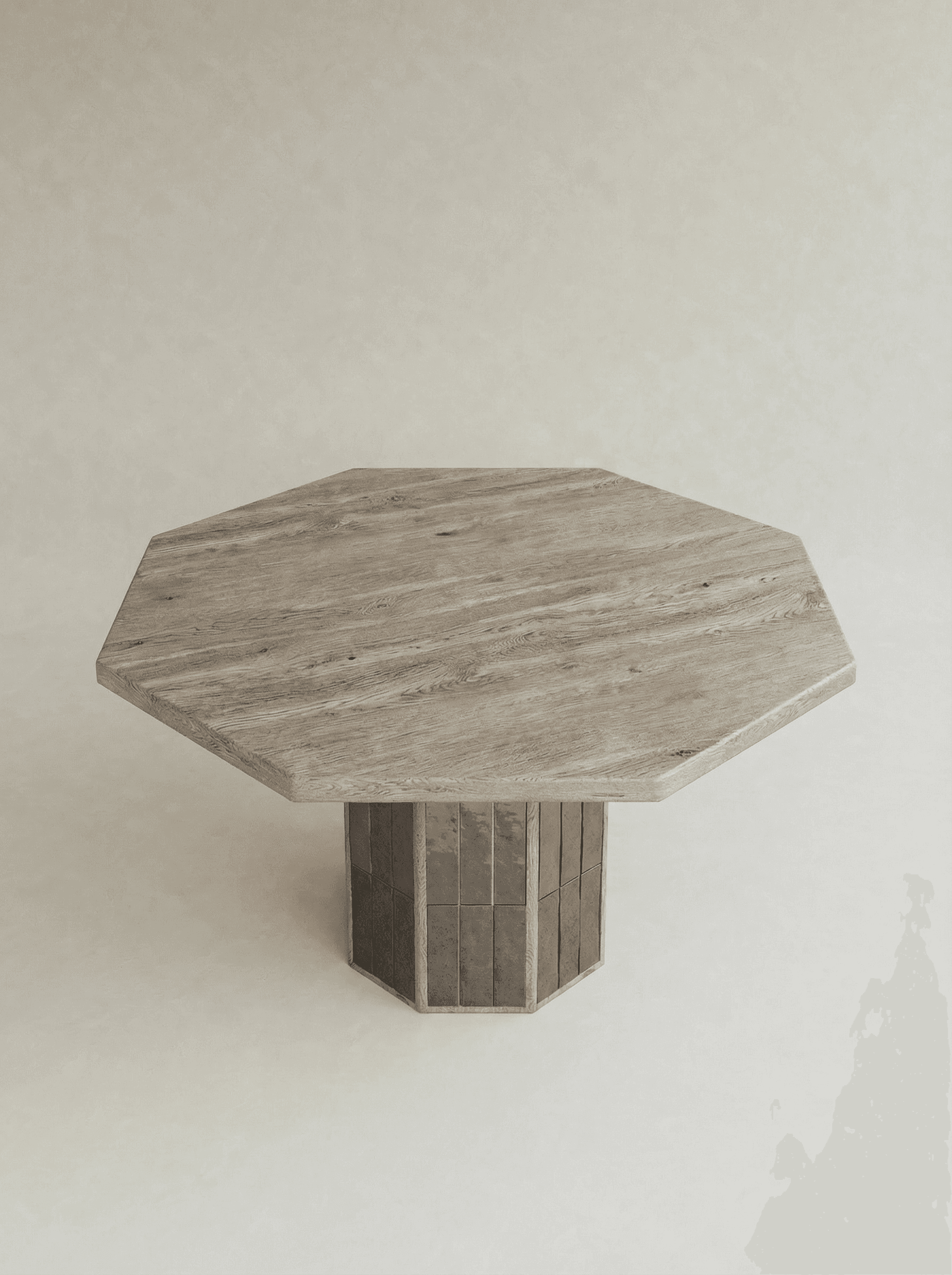 LUME is a sculptural dialogue between wood and tile, inspired by the quiet glow of light emerging from natural elements. Defined by vertical tile rhythms that catch and reflect light, each piece transforms the surface into atmosphere, blending the grounded warmth of wood with the luminous texture of glazed ceramic. This interplay creates a living presence—both solid and radiant—where minimal forms become poetic expressions of balance, timelessness, and material harmony.