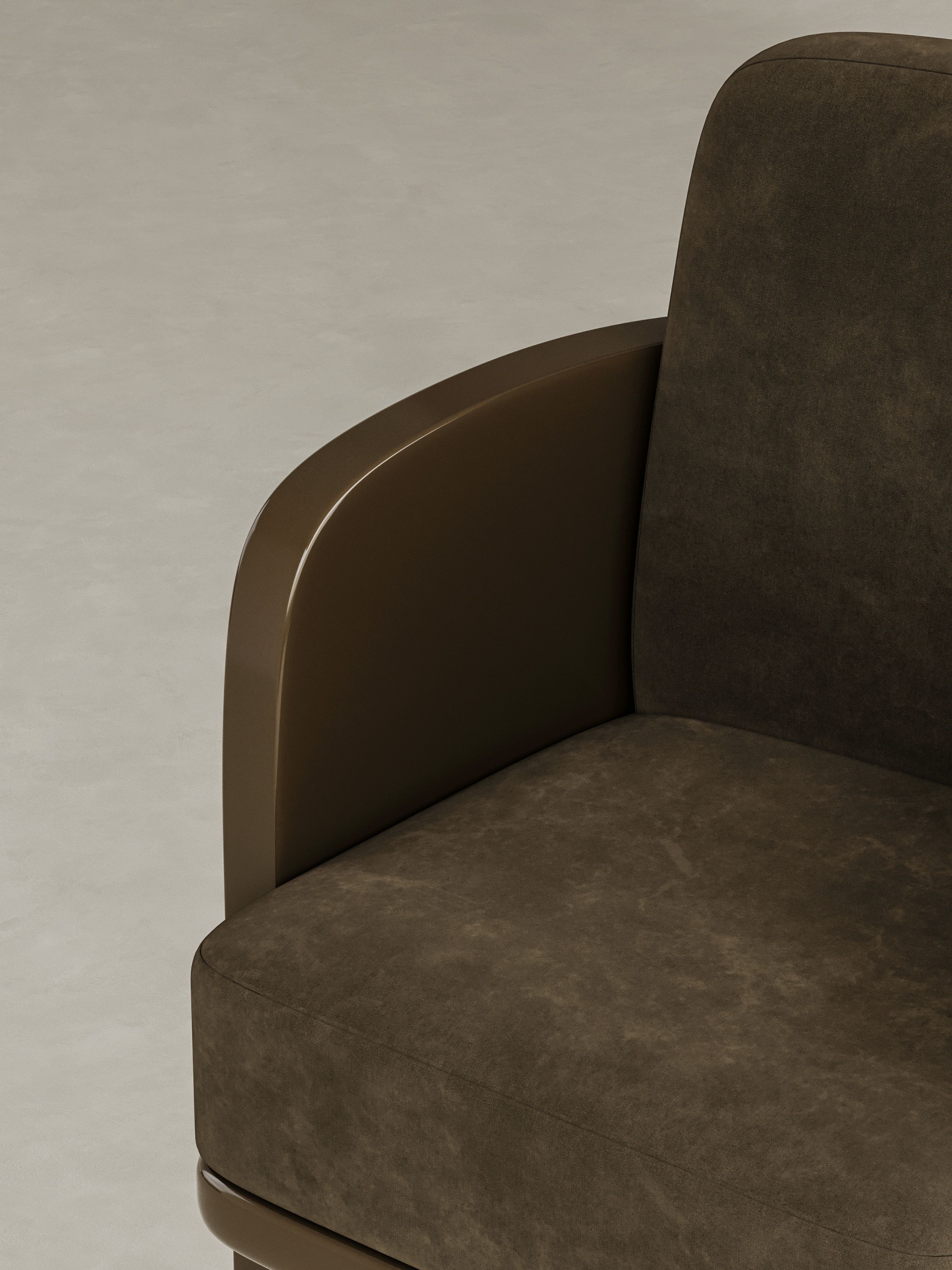 MIRA takes its name from the idea of quiet observation and balance, reflecting a collection defined by clarity of form and material contrast. Crafted from smoked oak, stone, lacquered surfaces, and soft mohair upholstery, each piece explores the dialogue between solidity and softness, precision and warmth. Rounded volumes and grounded bases create a sense of calm permanence, while smooth planes and tactile finishes invite touch and intimacy. This recurring language of restrained curves and composed proportions becomes the signature of MIRA, uniting the collection through a subtle sculptural presence. Contemporary yet timeless, MIRA is an exploration of material honesty and refined comfort, shaped into furniture designed to endure both physically and emotionally.