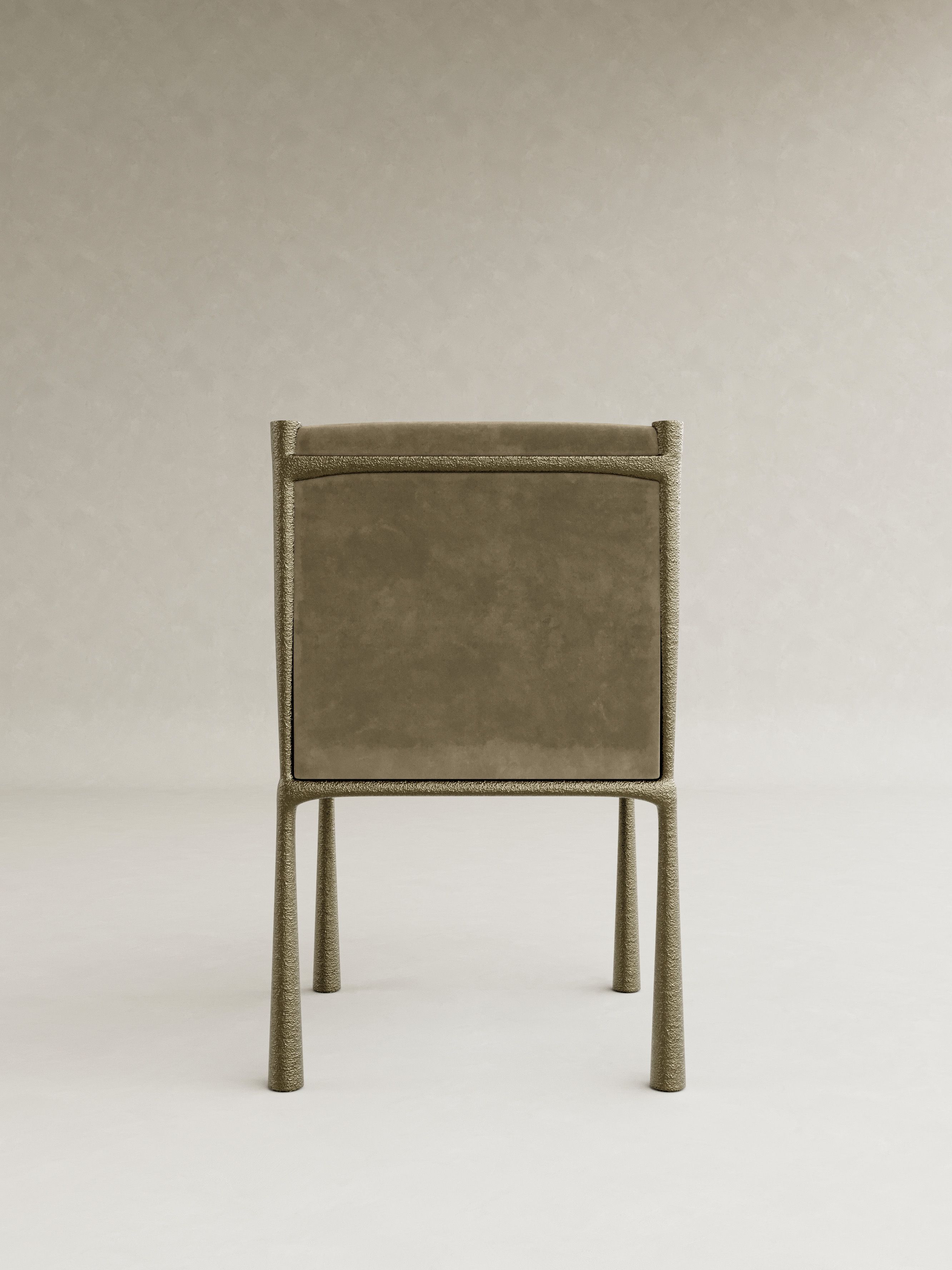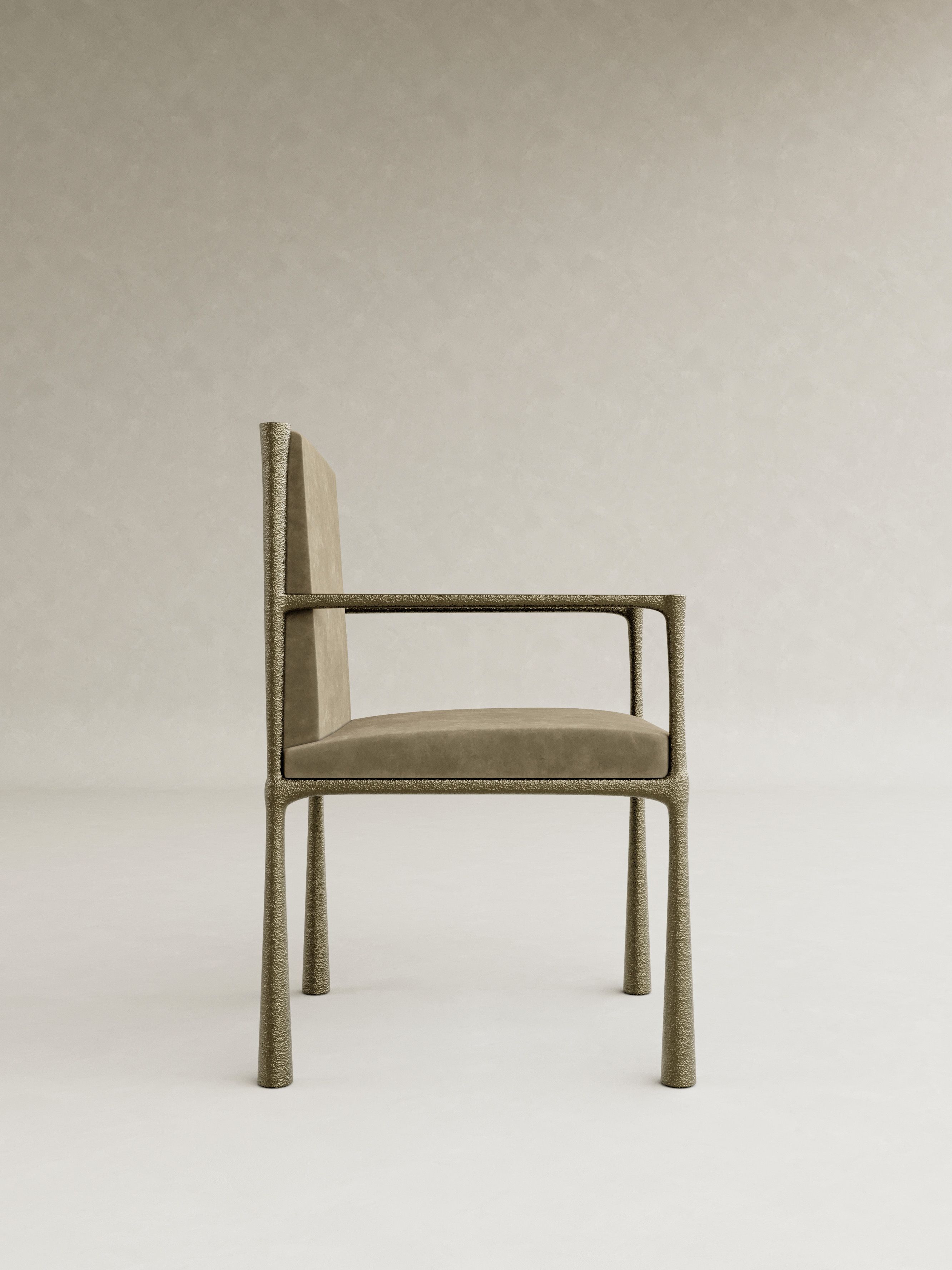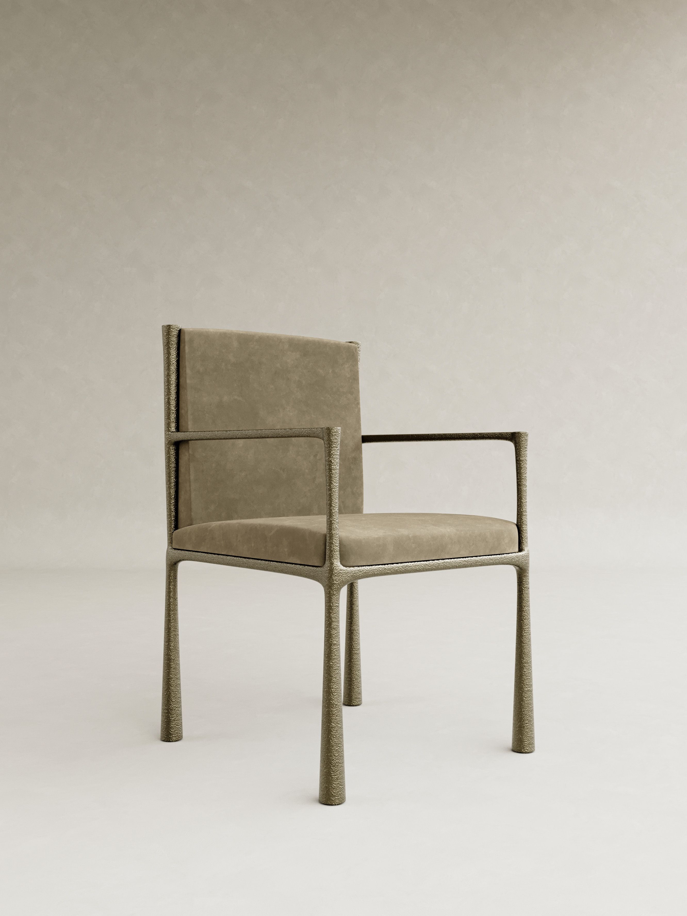 ORIN is defined by a quiet strength and a sense of poised balance, expressed through sculptural forms cast brass and softened by glass and mohair. The collection is anchored by a distinctive structural gesture: slender, textured legs that rise with subtle curvature, creating a rhythmic framework that supports each piece with elegance and restraint. Cast brass brings depth and tactility, its surface catching light with a muted glow, while translucent glass and plush mohair introduce contrast and warmth. This recurring interplay of structure and softness becomes the signature of ORIN, uniting the collection through a language that is both architectural and intimate. Contemporary yet enduring, ORIN explores material refinement and sculptural clarity, resulting in furniture conceived as lasting objects of presence and quiet sophistication.
