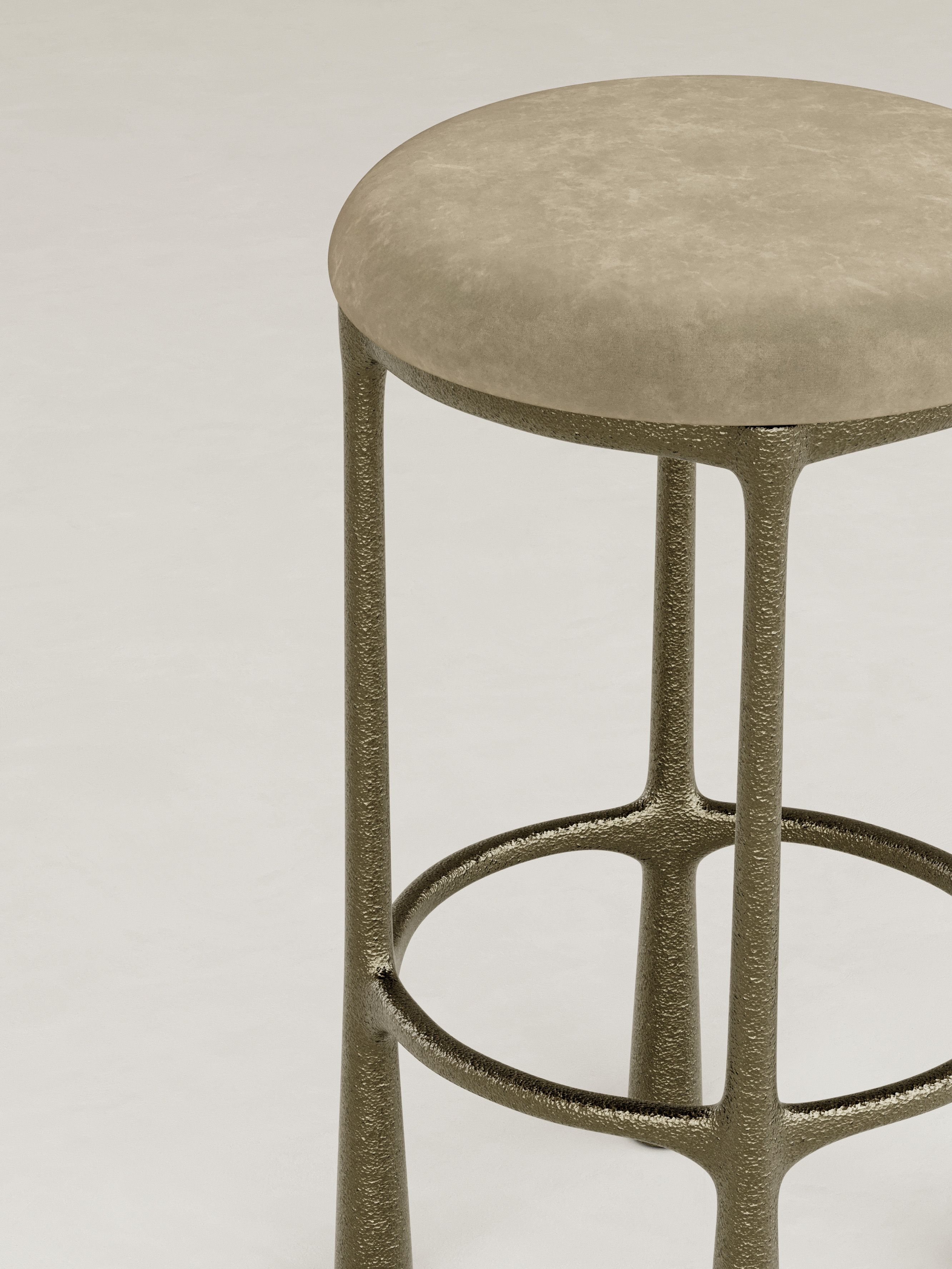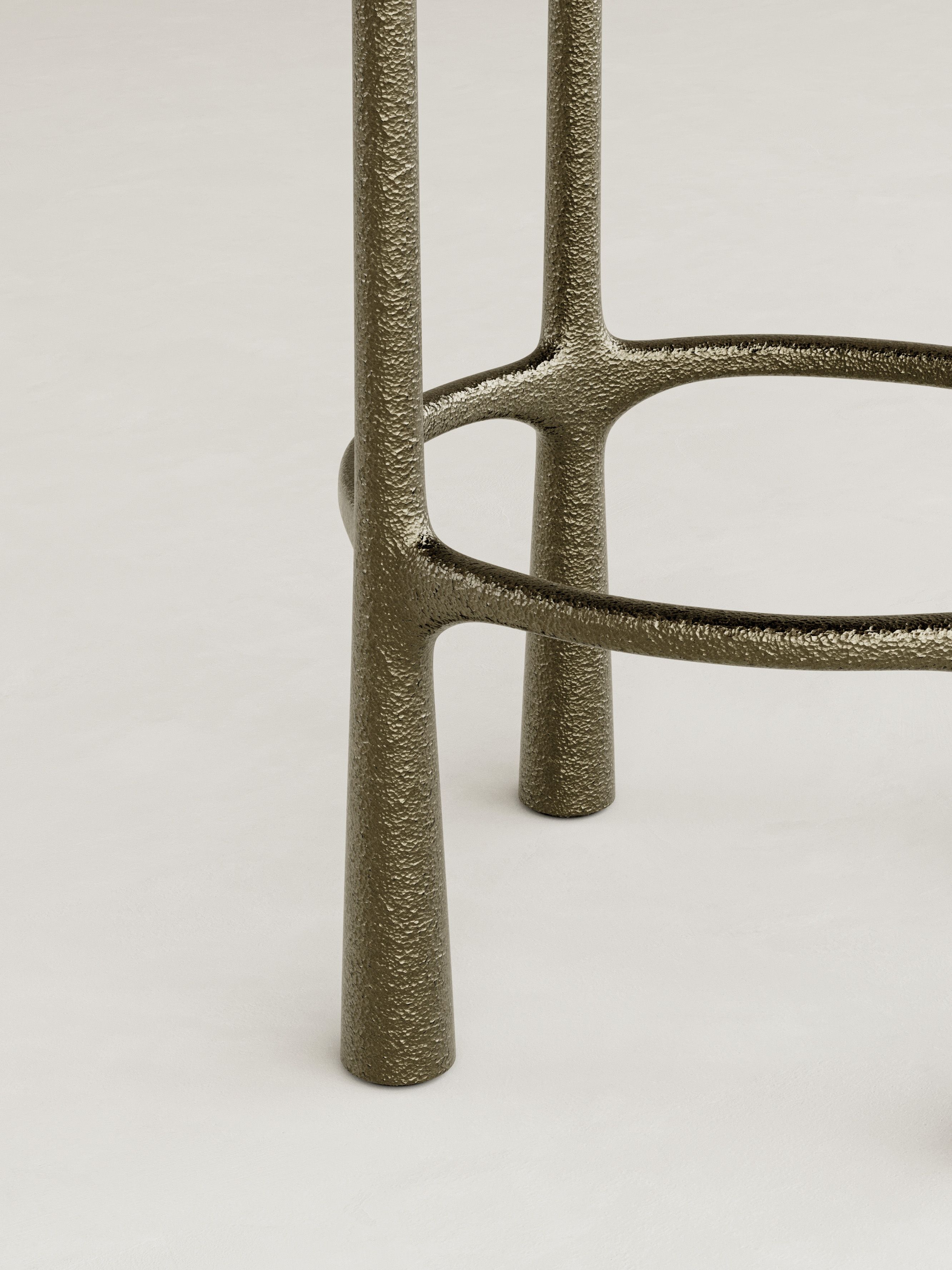ORIN is defined by a quiet strength and a sense of poised balance, expressed through sculptural forms cast brass and softened by glass and mohair. The collection is anchored by a distinctive structural gesture: slender, textured legs that rise with subtle curvature, creating a rhythmic framework that supports each piece with elegance and restraint. Cast brass brings depth and tactility, its surface catching light with a muted glow, while translucent glass and plush mohair introduce contrast and warmth. This recurring interplay of structure and softness becomes the signature of ORIN, uniting the collection through a language that is both architectural and intimate. Contemporary yet enduring, ORIN explores material refinement and sculptural clarity, resulting in furniture conceived as lasting objects of presence and quiet sophistication.