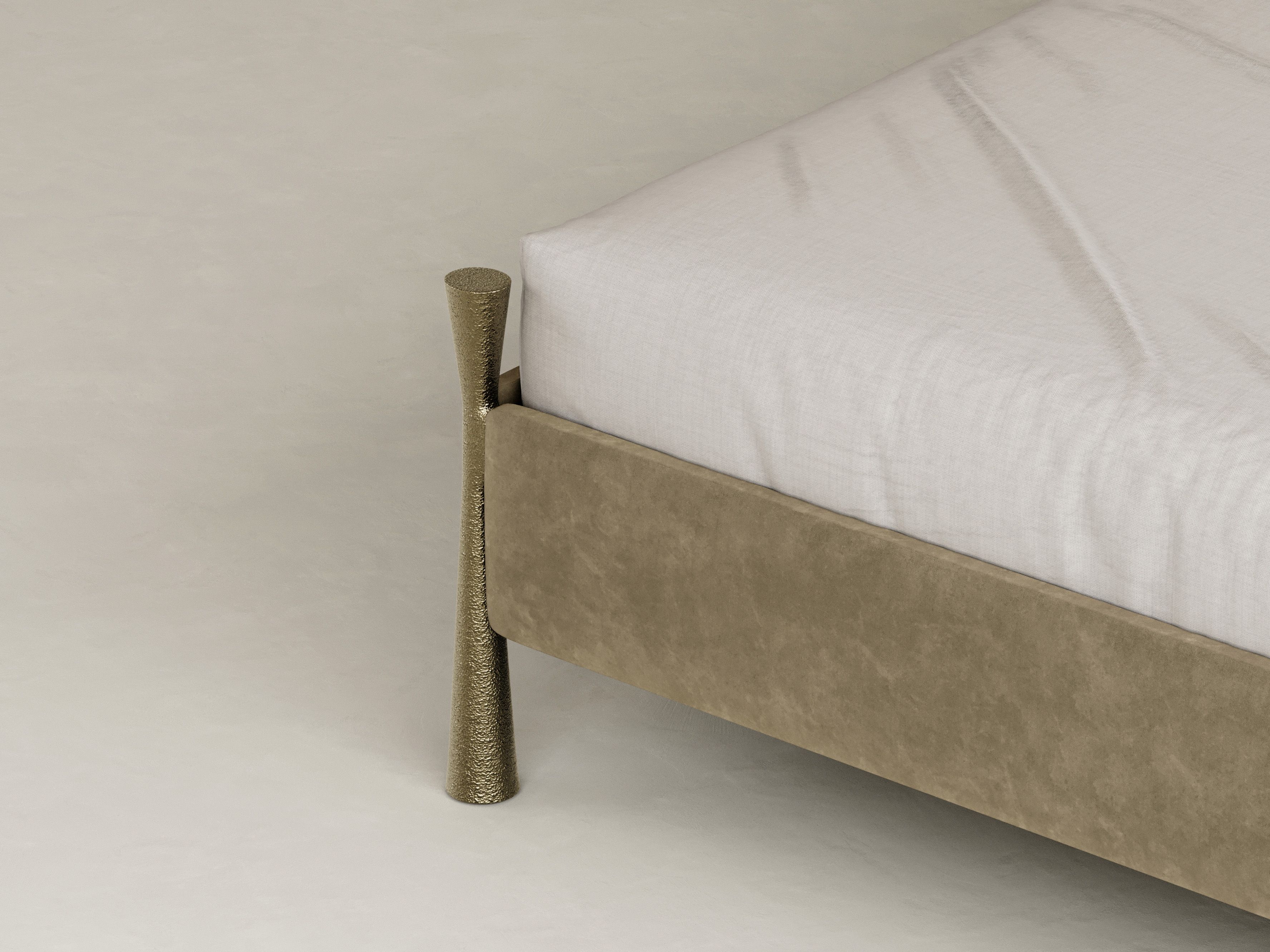 ORIN is defined by a quiet strength and a sense of poised balance, expressed through sculptural forms cast brass and softened by glass and mohair. The collection is anchored by a distinctive structural gesture: slender, textured legs that rise with subtle curvature, creating a rhythmic framework that supports each piece with elegance and restraint. Cast brass brings depth and tactility, its surface catching light with a muted glow, while translucent glass and plush mohair introduce contrast and warmth. This recurring interplay of structure and softness becomes the signature of ORIN, uniting the collection through a language that is both architectural and intimate. Contemporary yet enduring, ORIN explores material refinement and sculptural clarity, resulting in furniture conceived as lasting objects of presence and quiet sophistication.