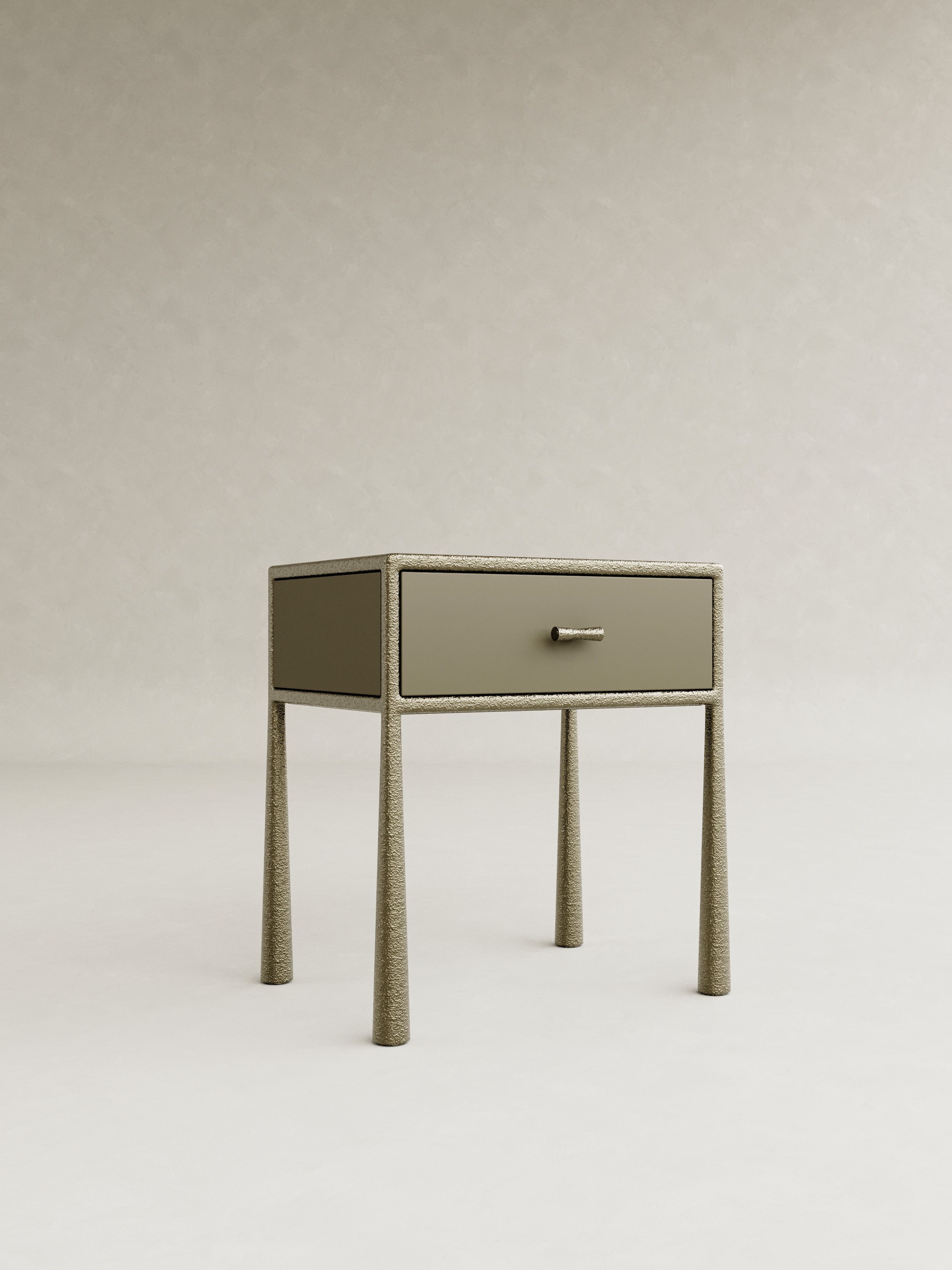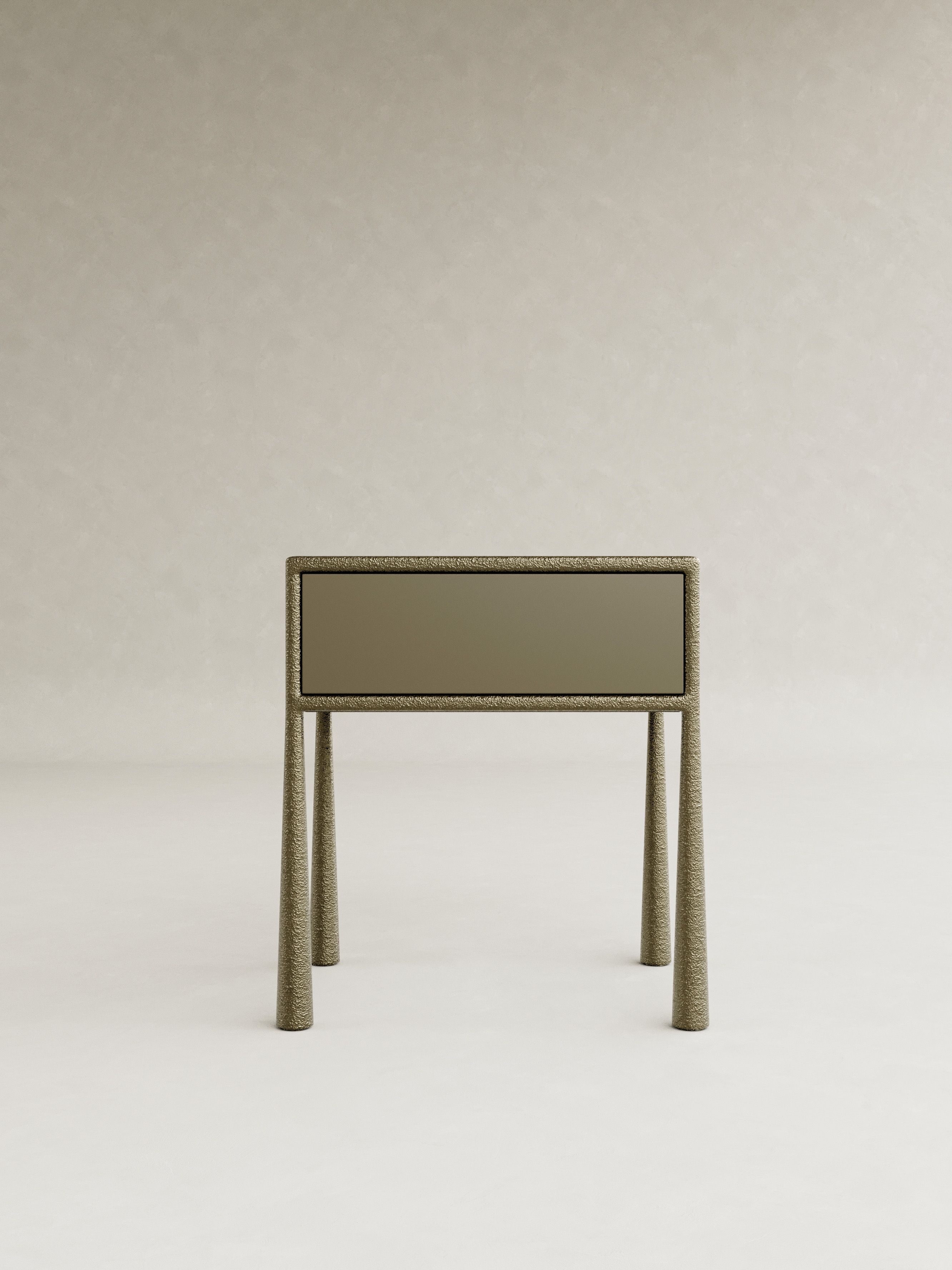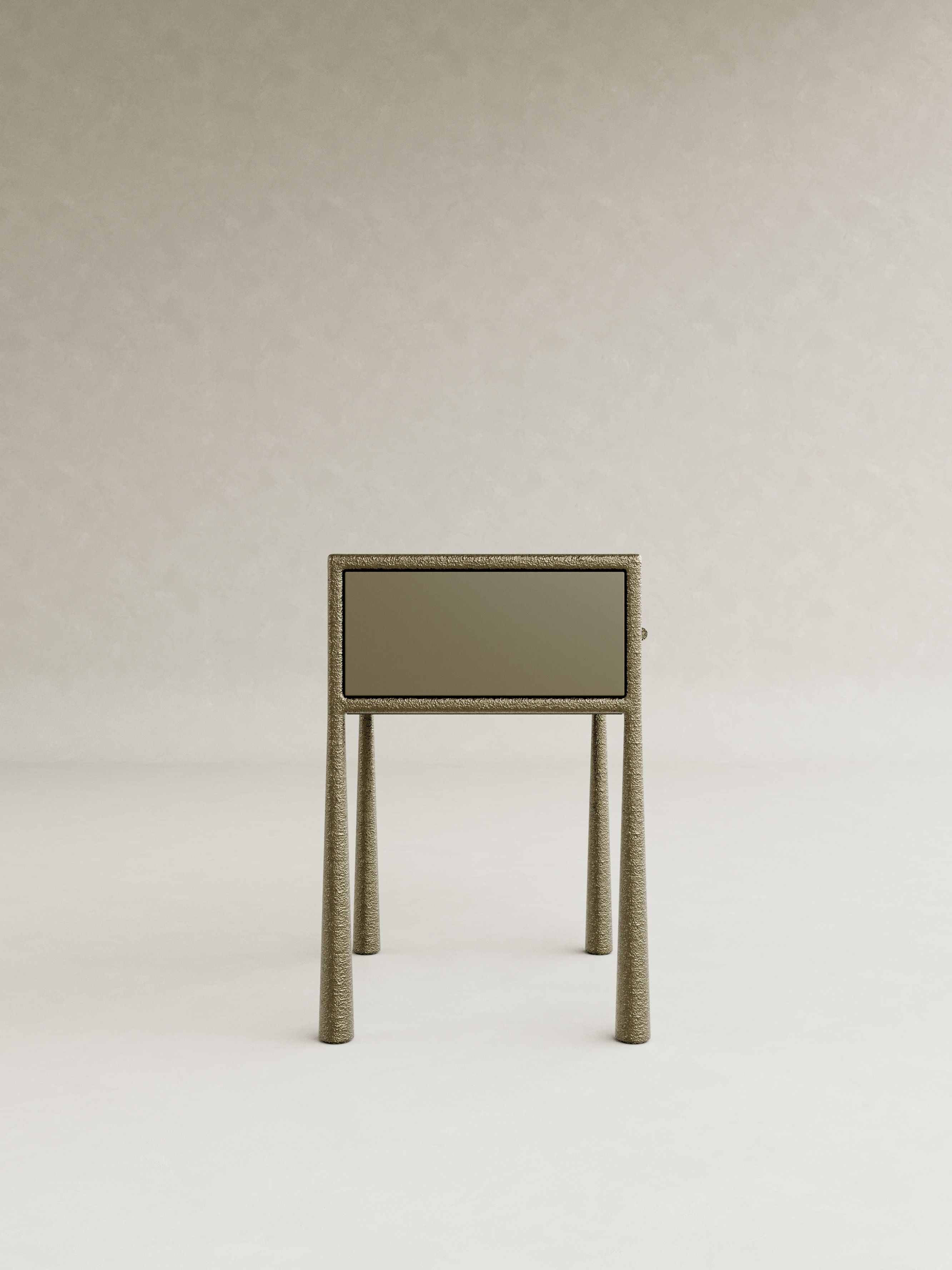 ORIN is defined by a quiet strength and a sense of poised balance, expressed through sculptural forms cast brass and softened by glass and mohair. The collection is anchored by a distinctive structural gesture: slender, textured legs that rise with subtle curvature, creating a rhythmic framework that supports each piece with elegance and restraint. Cast brass brings depth and tactility, its surface catching light with a muted glow, while translucent glass and plush mohair introduce contrast and warmth. This recurring interplay of structure and softness becomes the signature of ORIN, uniting the collection through a language that is both architectural and intimate. Contemporary yet enduring, ORIN explores material refinement and sculptural clarity, resulting in furniture conceived as lasting objects of presence and quiet sophistication.