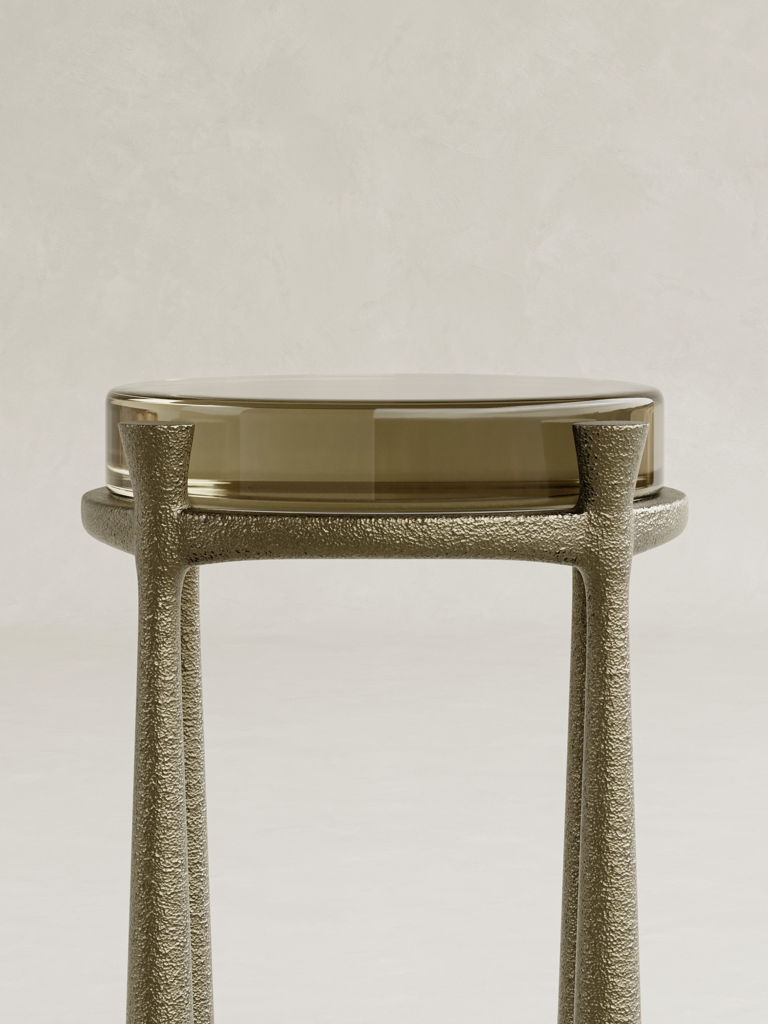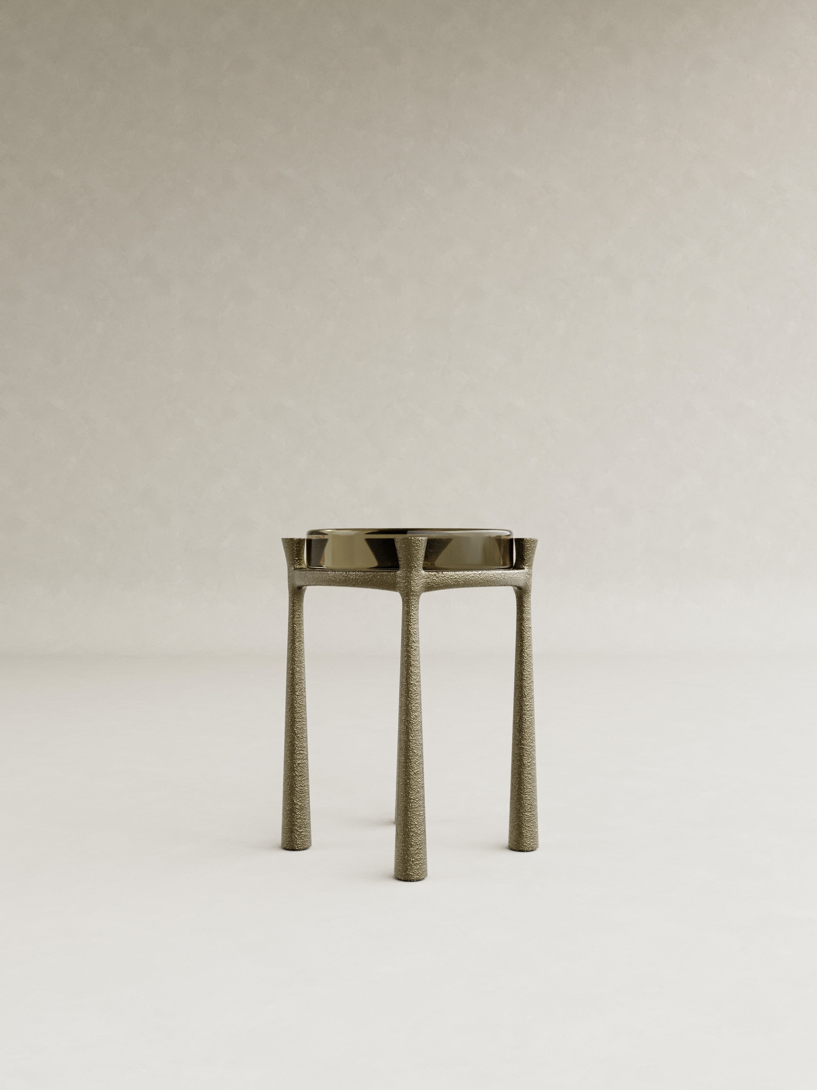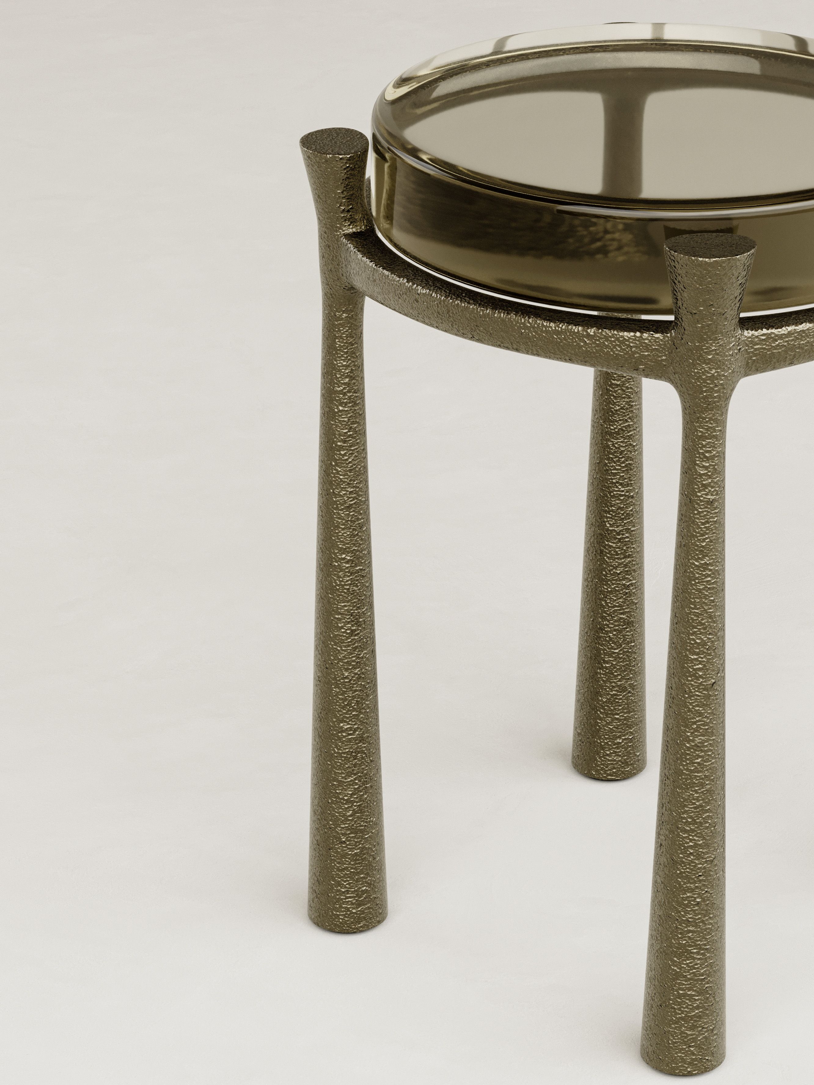 ORIN is defined by a quiet strength and a sense of poised balance, expressed through sculptural forms cast brass and softened by glass and mohair. The collection is anchored by a distinctive structural gesture: slender, textured legs that rise with subtle curvature, creating a rhythmic framework that supports each piece with elegance and restraint. Cast brass brings depth and tactility, its surface catching light with a muted glow, while translucent glass and plush mohair introduce contrast and warmth. This recurring interplay of structure and softness becomes the signature of ORIN, uniting the collection through a language that is both architectural and intimate. Contemporary yet enduring, ORIN explores material refinement and sculptural clarity, resulting in furniture conceived as lasting objects of presence and quiet sophistication.