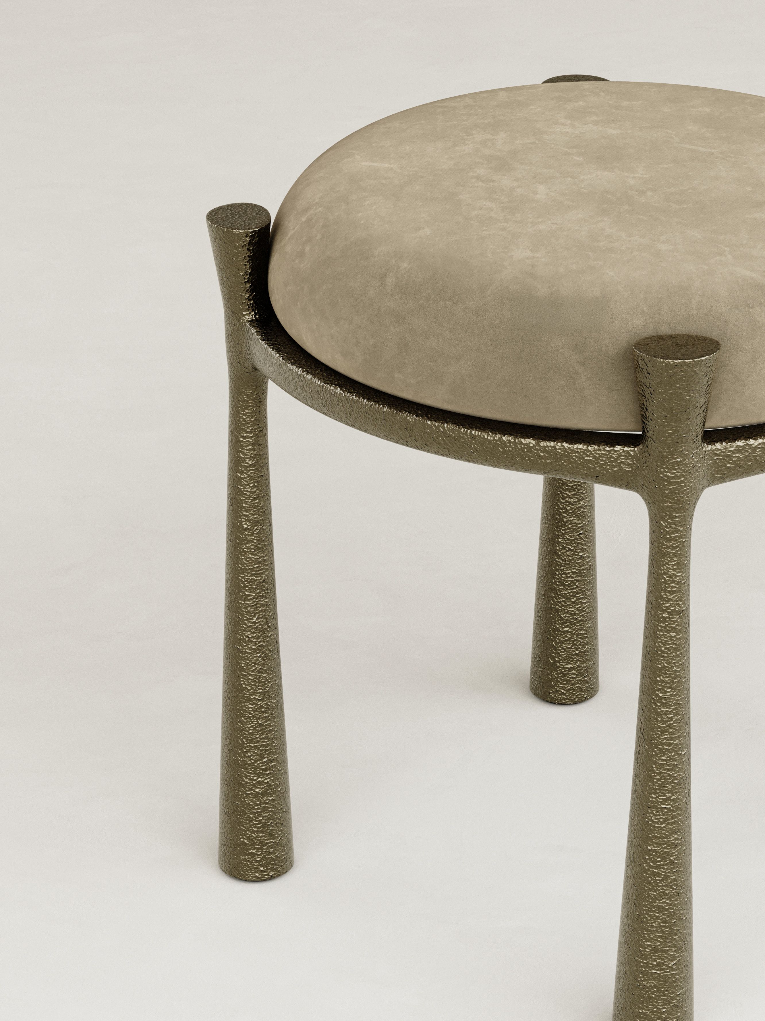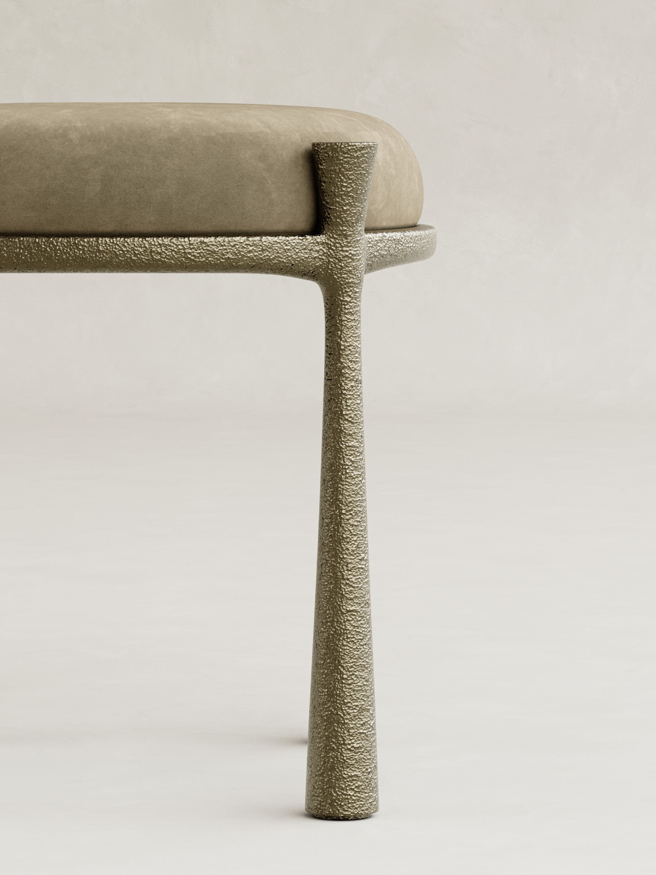 ORIN is defined by a quiet strength and a sense of poised balance, expressed through sculptural forms cast brass and softened by glass and mohair. The collection is anchored by a distinctive structural gesture: slender, textured legs that rise with subtle curvature, creating a rhythmic framework that supports each piece with elegance and restraint. Cast brass brings depth and tactility, its surface catching light with a muted glow, while translucent glass and plush mohair introduce contrast and warmth. This recurring interplay of structure and softness becomes the signature of ORIN, uniting the collection through a language that is both architectural and intimate. Contemporary yet enduring, ORIN explores material refinement and sculptural clarity, resulting in furniture conceived as lasting objects of presence and quiet sophistication.