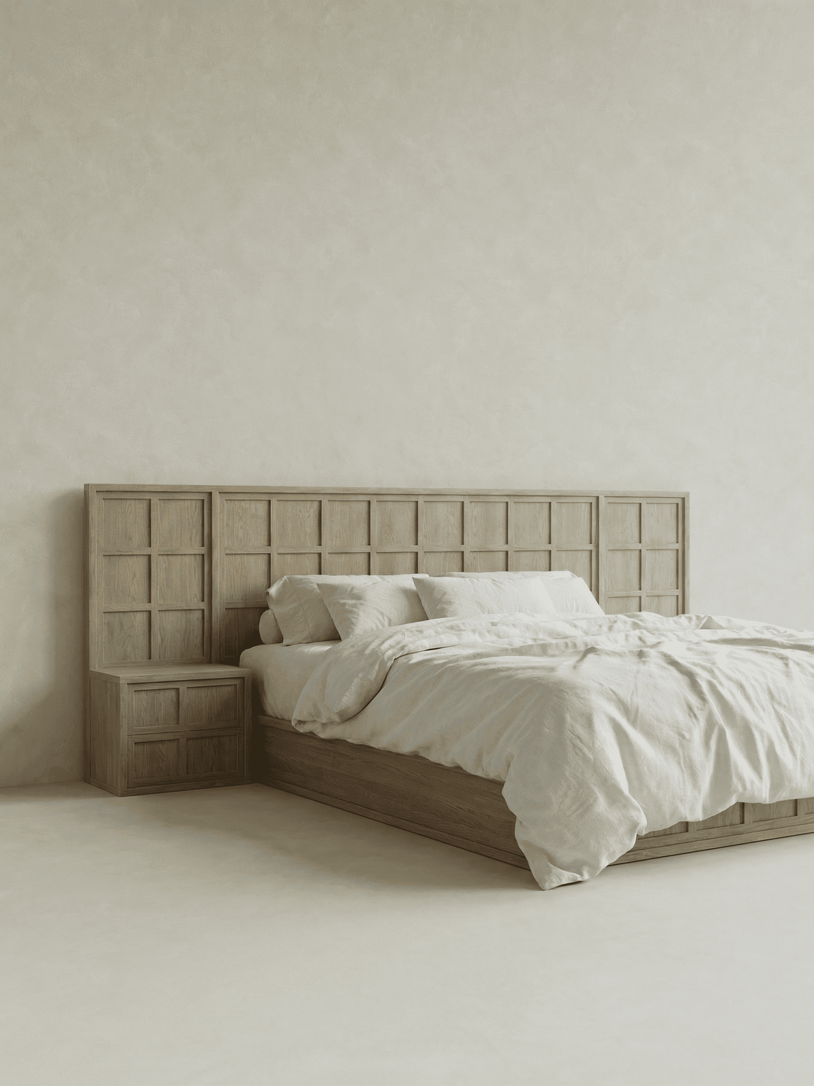 ROWE is a study in authority, white oak shaped through the disciplined language of classic millwork: panelling, plinths, and clean architectural proportion. Each piece carries the familiarity of inherited interiors, edited into a contemporary register with low-slung silhouettes, softened edges, and generous planes that let the material lead. The detailing is deliberate rather than decorative: rhythmic frame lines, grounded bases, and a built-in sense of permanence translated into furniture. ROWE is designed to live like an heirloom from day one, enduring, composed, and made to gather time.