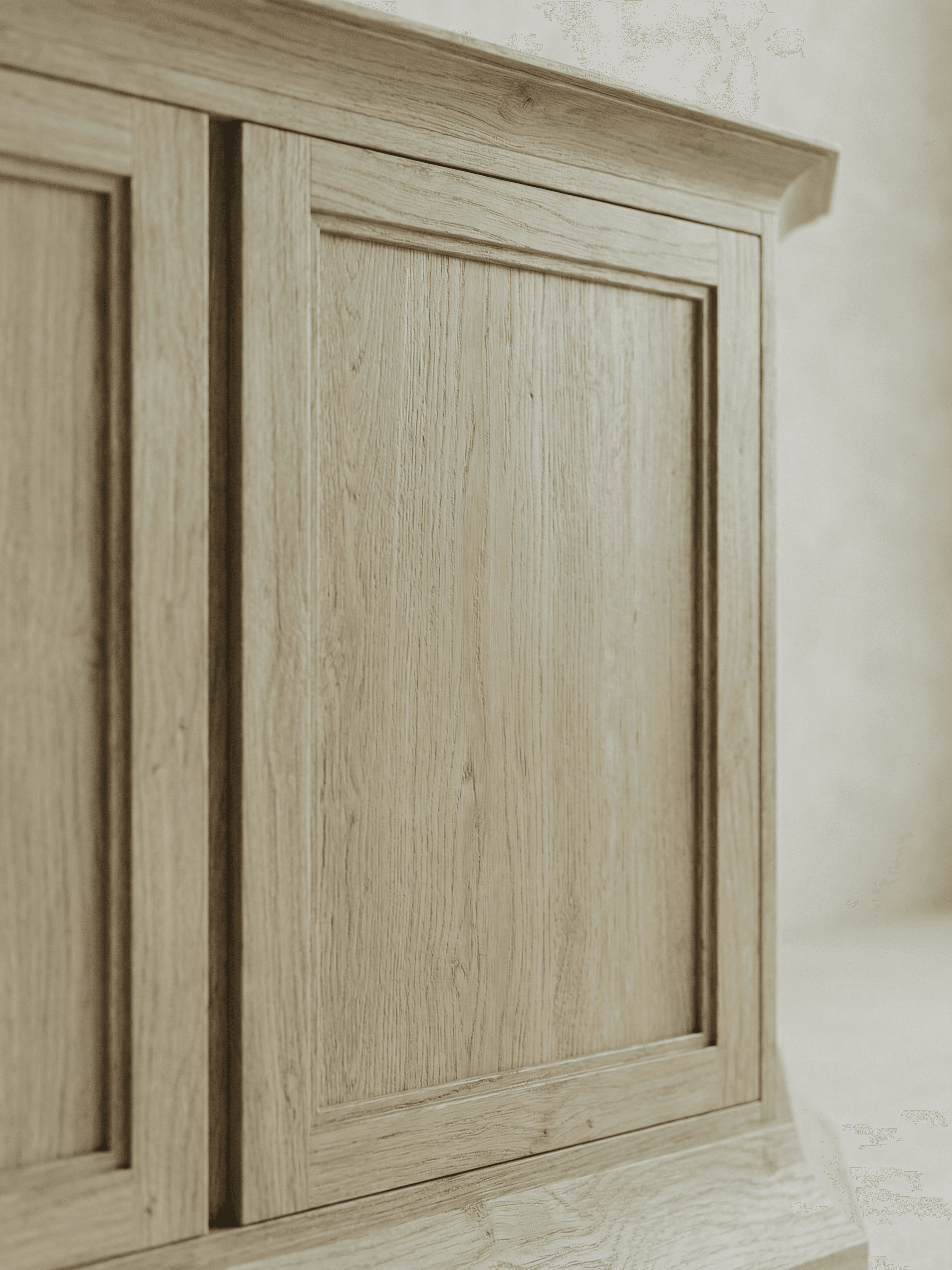 ROWE is a study in authority, white oak shaped through the disciplined language of classic millwork: panelling, plinths, and clean architectural proportion. Each piece carries the familiarity of inherited interiors, edited into a contemporary register with low-slung silhouettes, softened edges, and generous planes that let the material lead. The detailing is deliberate rather than decorative: rhythmic frame lines, grounded bases, and a built-in sense of permanence translated into furniture. ROWE is designed to live like an heirloom from day one, enduring, composed, and made to gather time.
