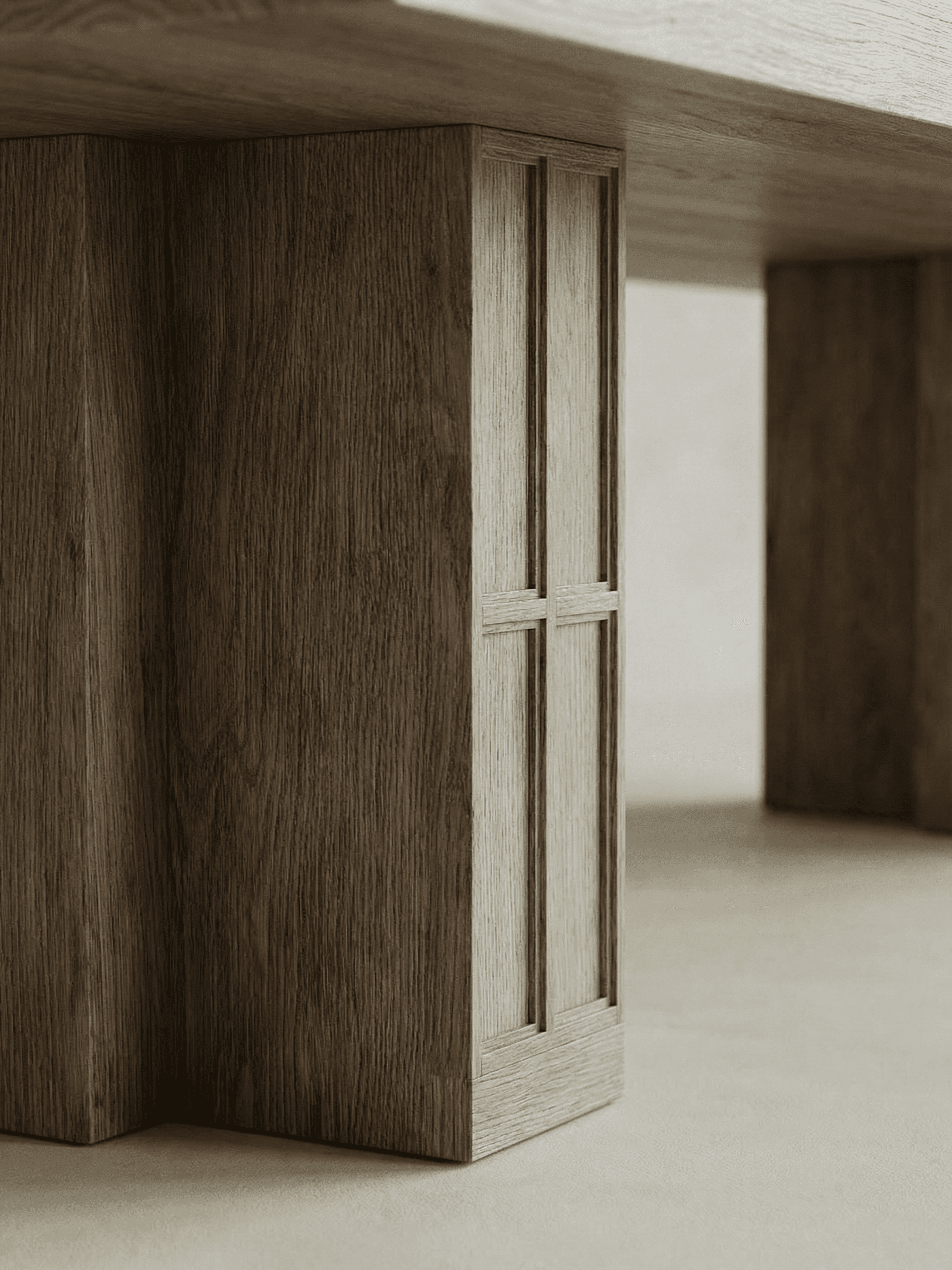 ROWE is a study in authority, white oak shaped through the disciplined language of classic millwork: panelling, plinths, and clean architectural proportion. Each piece carries the familiarity of inherited interiors, edited into a contemporary register with low-slung silhouettes, softened edges, and generous planes that let the material lead. The detailing is deliberate rather than decorative: rhythmic frame lines, grounded bases, and a built-in sense of permanence translated into furniture. ROWE is designed to live like an heirloom from day one, enduring, composed, and made to gather time.