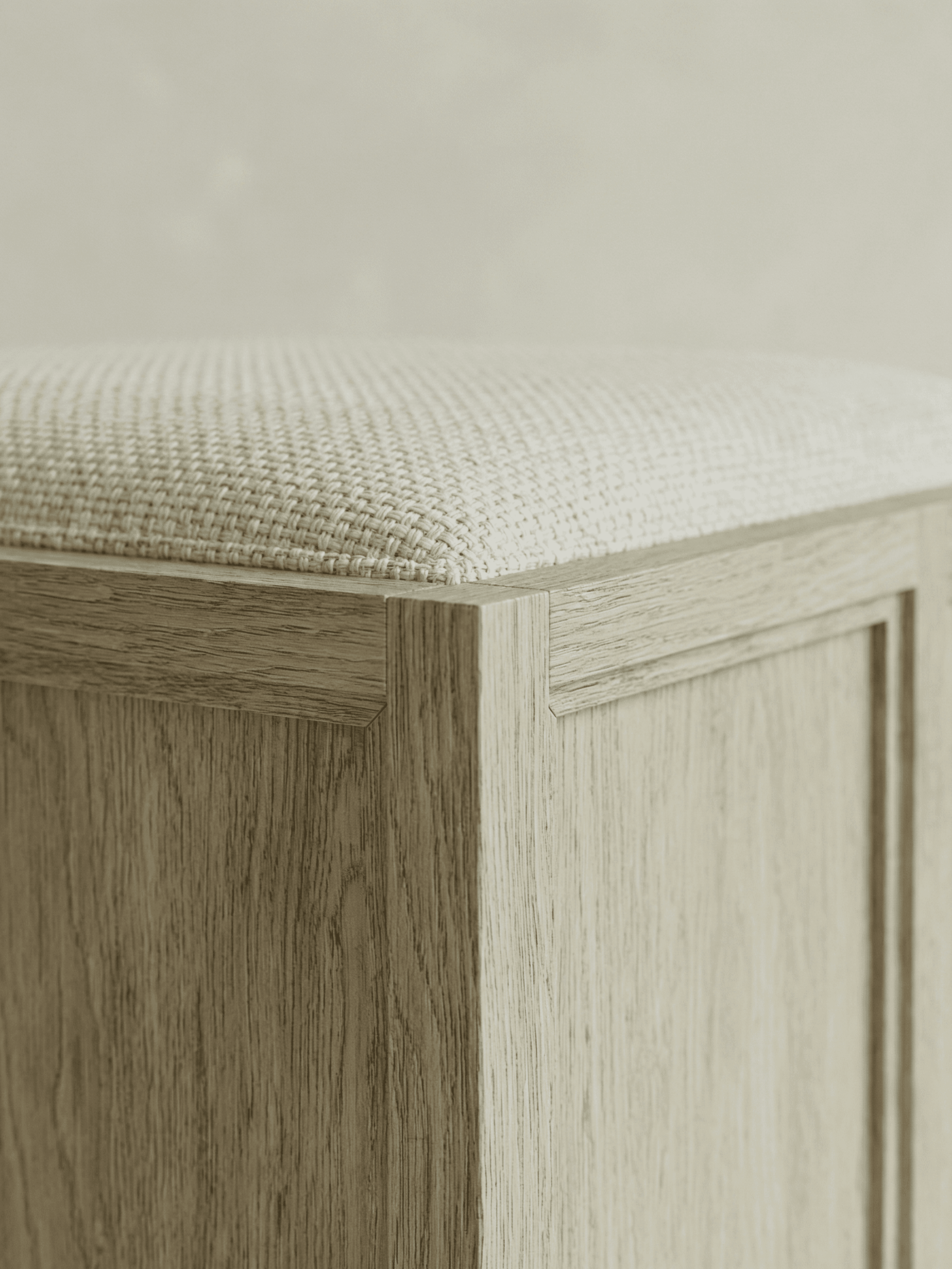 ROWE is a study in authority, white oak shaped through the disciplined language of classic millwork: panelling, plinths, and clean architectural proportion. Each piece carries the familiarity of inherited interiors, edited into a contemporary register with low-slung silhouettes, softened edges, and generous planes that let the material lead. The detailing is deliberate rather than decorative: rhythmic frame lines, grounded bases, and a built-in sense of permanence translated into furniture. ROWE is designed to live like an heirloom from day one, enduring, composed, and made to gather time.