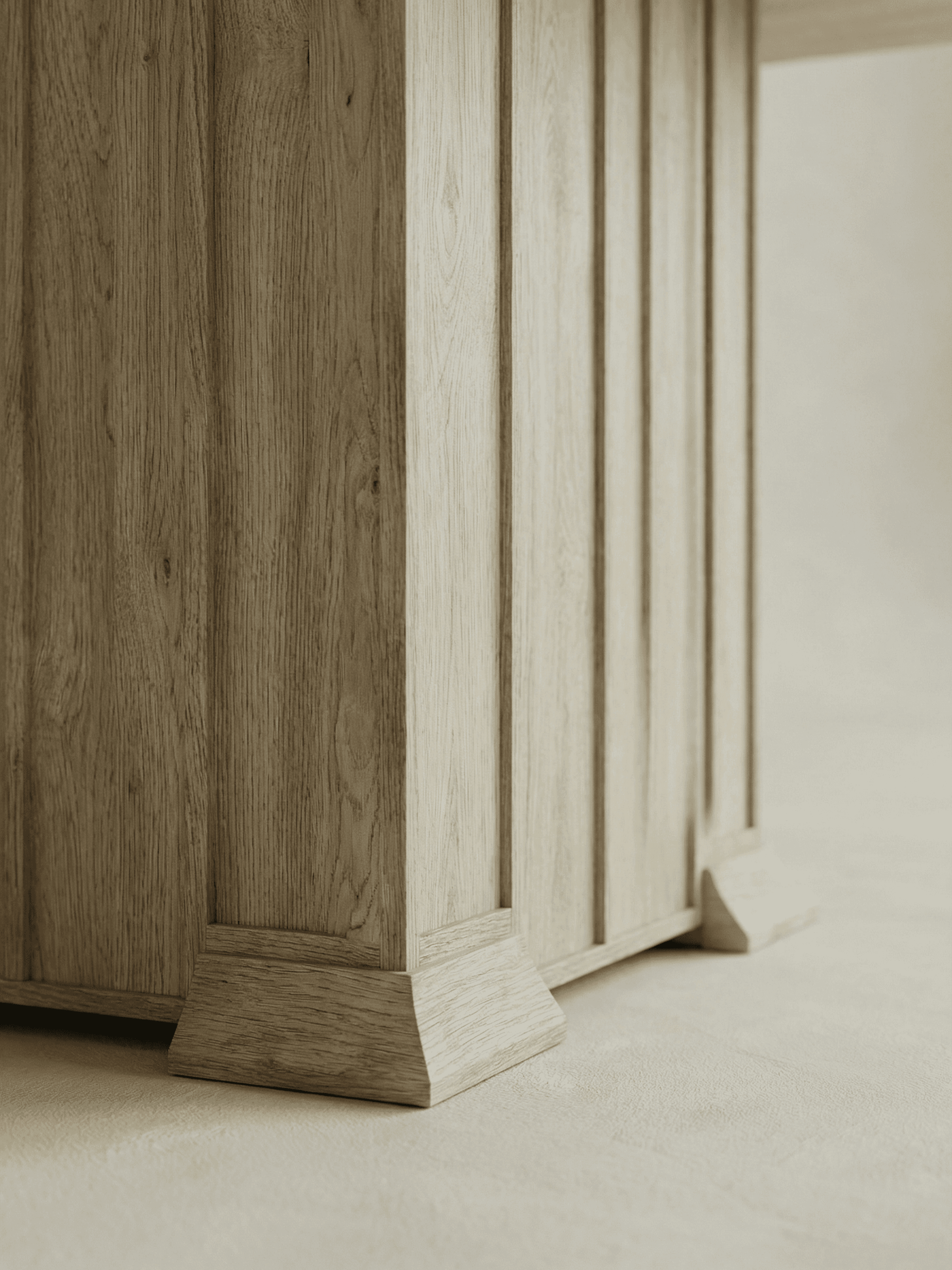 ROWE is a study in authority, white oak shaped through the disciplined language of classic millwork: panelling, plinths, and clean architectural proportion. Each piece carries the familiarity of inherited interiors, edited into a contemporary register with low-slung silhouettes, softened edges, and generous planes that let the material lead. The detailing is deliberate rather than decorative: rhythmic frame lines, grounded bases, and a built-in sense of permanence translated into furniture. ROWE is designed to live like an heirloom from day one, enduring, composed, and made to gather time.