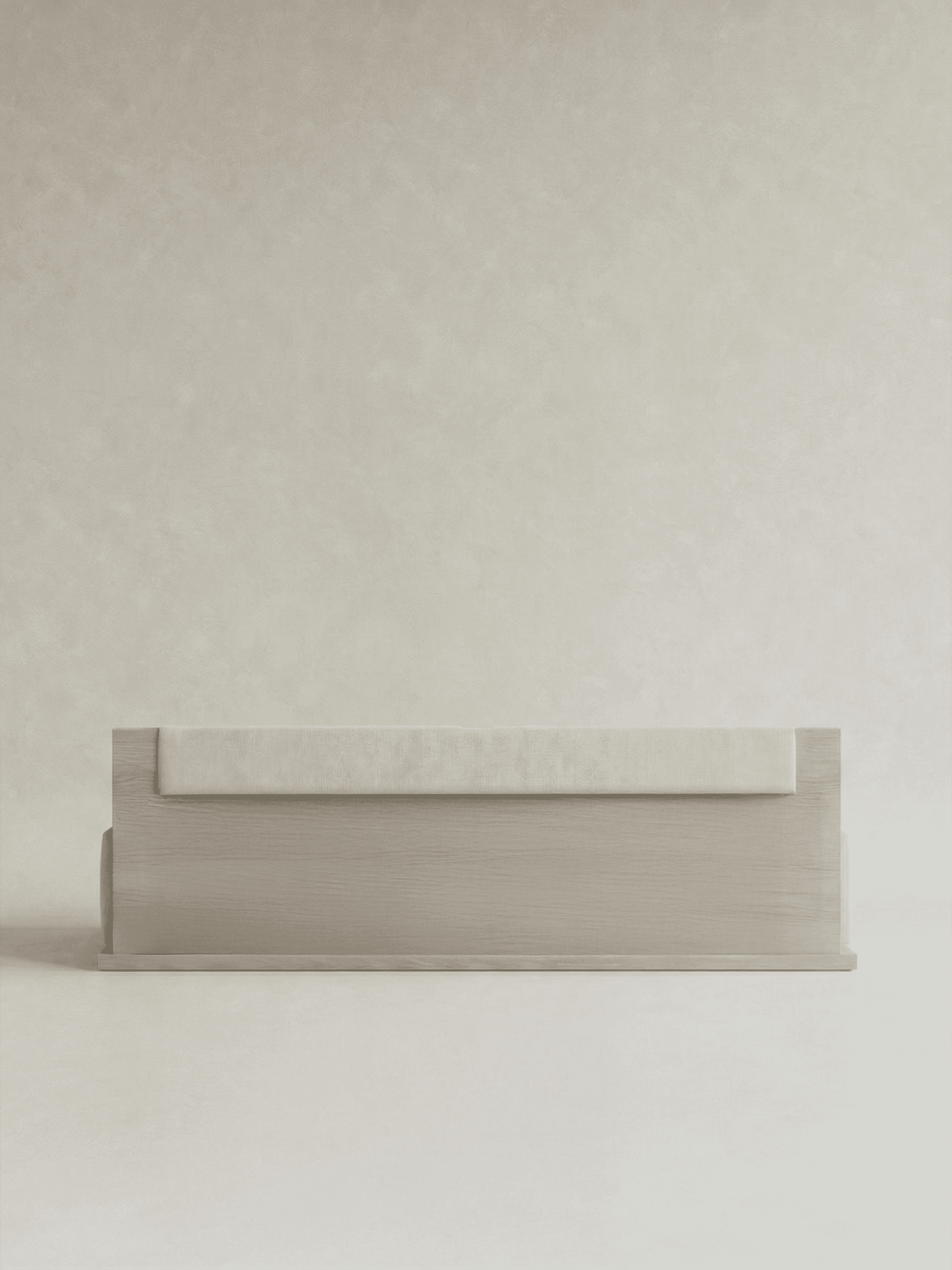 ROWE is a study in authority, white oak shaped through the disciplined language of classic millwork: panelling, plinths, and clean architectural proportion. Each piece carries the familiarity of inherited interiors, edited into a contemporary register with low-slung silhouettes, softened edges, and generous planes that let the material lead. The detailing is deliberate rather than decorative: rhythmic frame lines, grounded bases, and a built-in sense of permanence translated into furniture. ROWE is designed to live like an heirloom from day one, enduring, composed, and made to gather time.