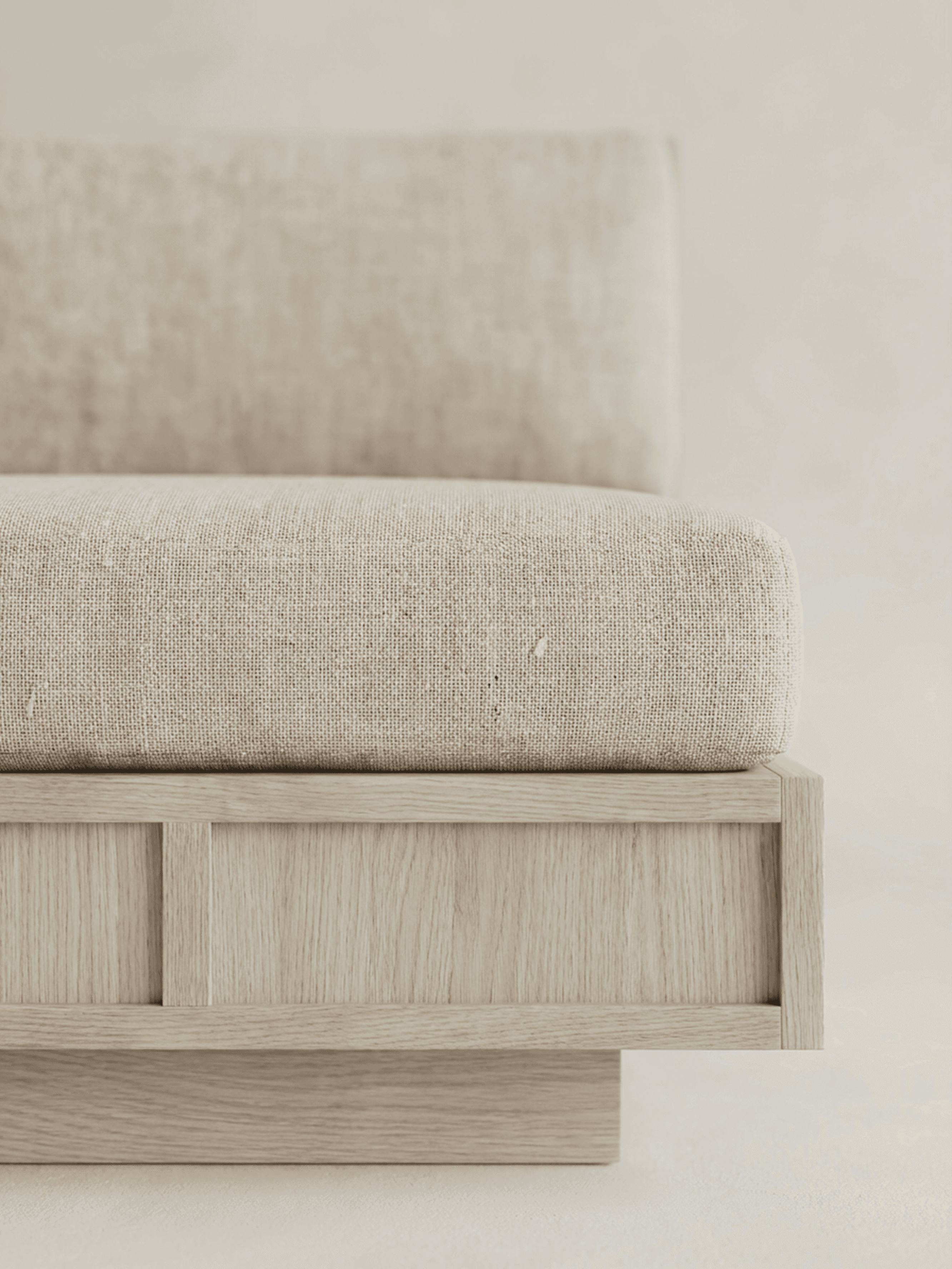 ROWE is a study in authority, white oak shaped through the disciplined language of classic millwork: panelling, plinths, and clean architectural proportion. Each piece carries the familiarity of inherited interiors, edited into a contemporary register with low-slung silhouettes, softened edges, and generous planes that let the material lead. The detailing is deliberate rather than decorative: rhythmic frame lines, grounded bases, and a built-in sense of permanence translated into furniture. ROWE is designed to live like an heirloom from day one, enduring, composed, and made to gather time.