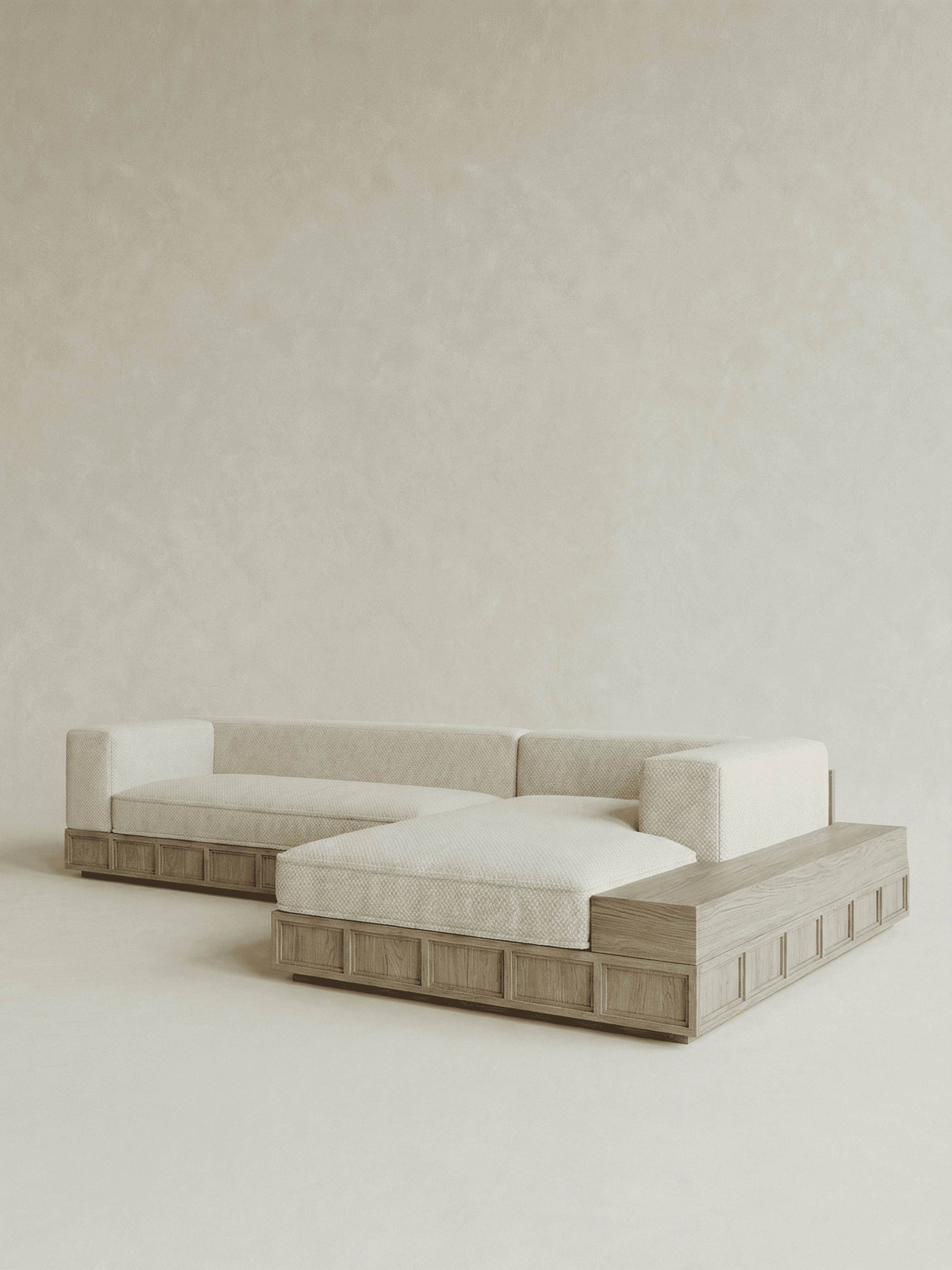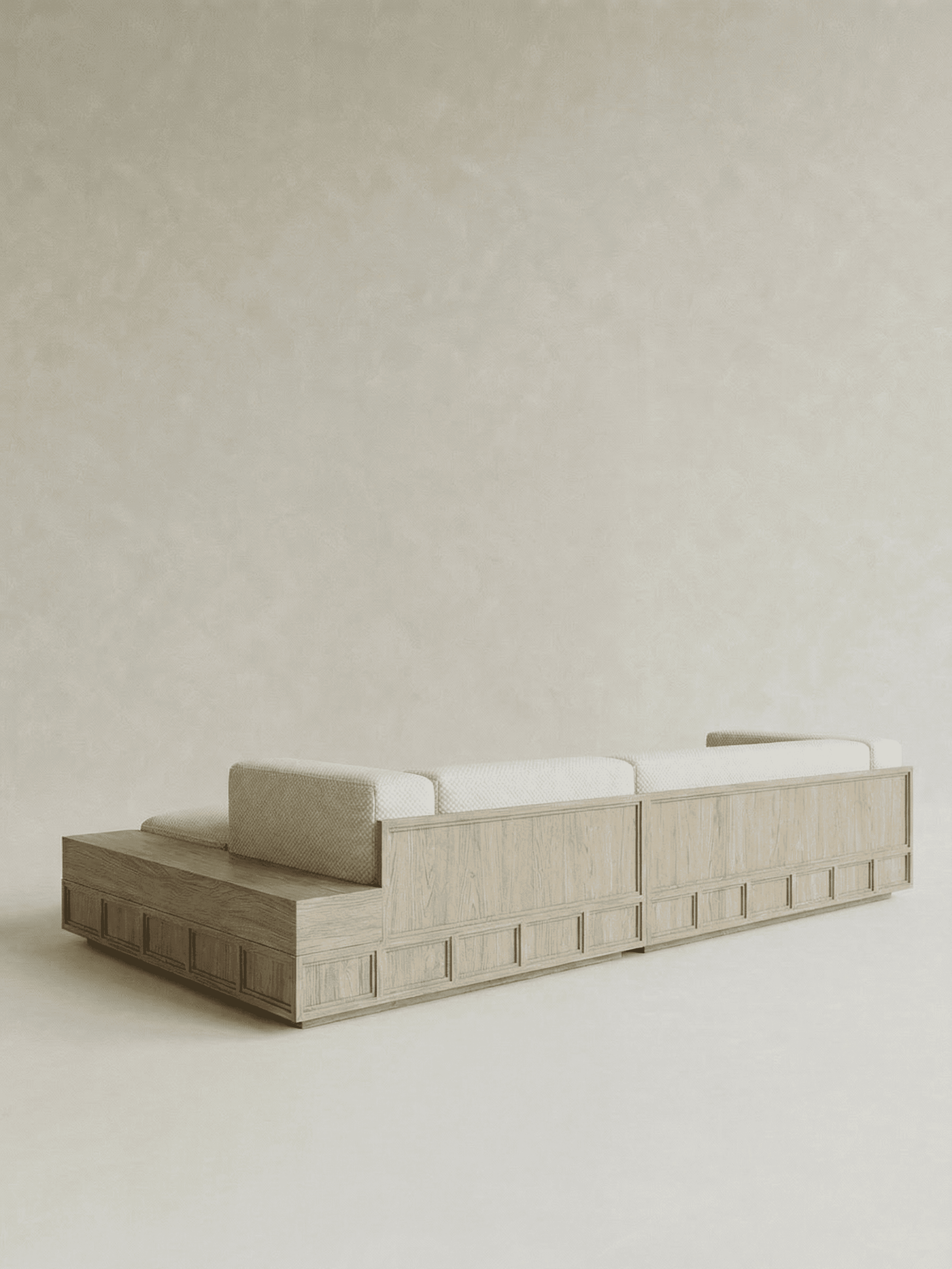 ROWE is a study in authority, white oak shaped through the disciplined language of classic millwork: panelling, plinths, and clean architectural proportion. Each piece carries the familiarity of inherited interiors, edited into a contemporary register with low-slung silhouettes, softened edges, and generous planes that let the material lead. The detailing is deliberate rather than decorative: rhythmic frame lines, grounded bases, and a built-in sense of permanence translated into furniture. ROWE is designed to live like an heirloom from day one, enduring, composed, and made to gather time.