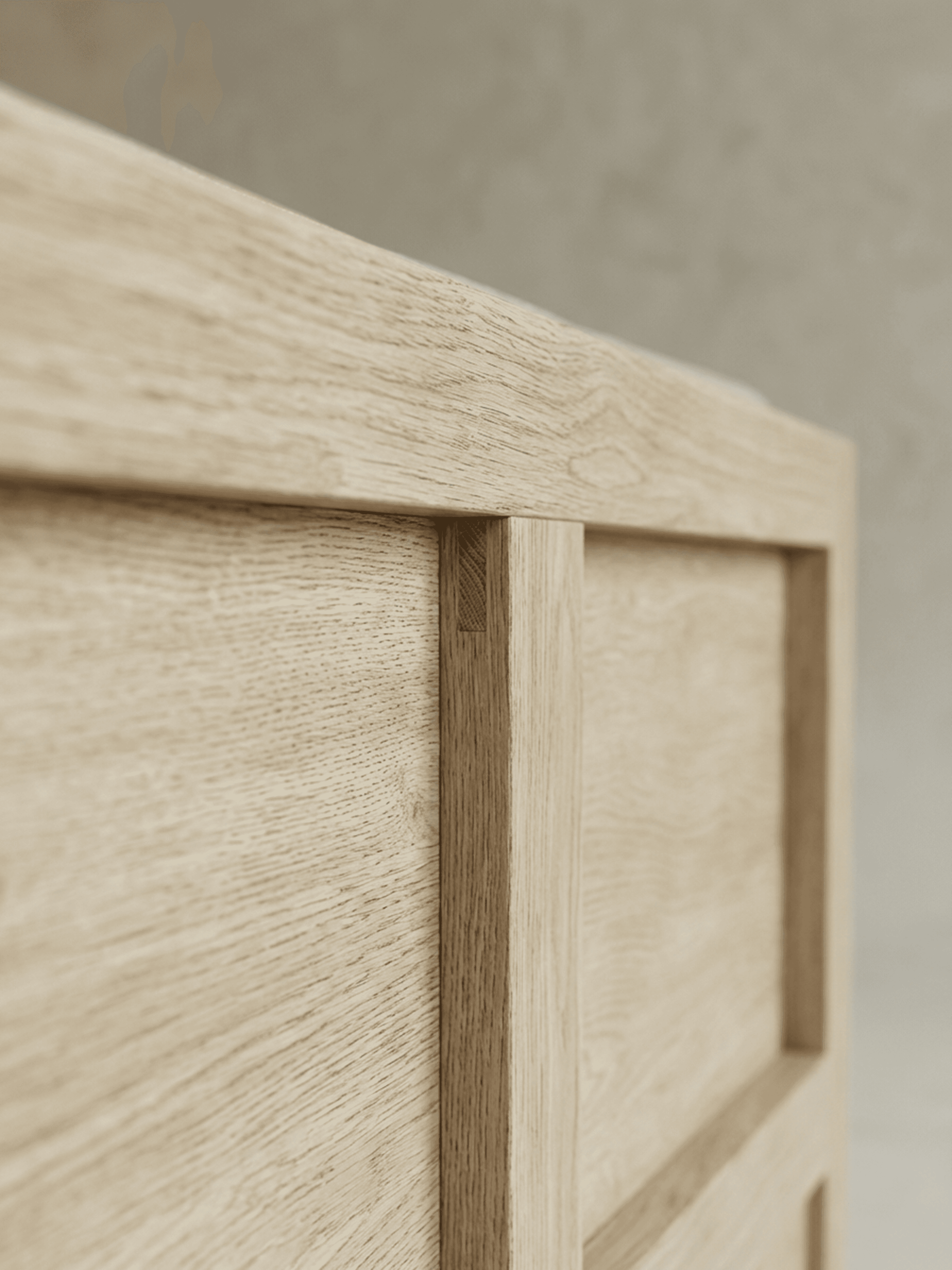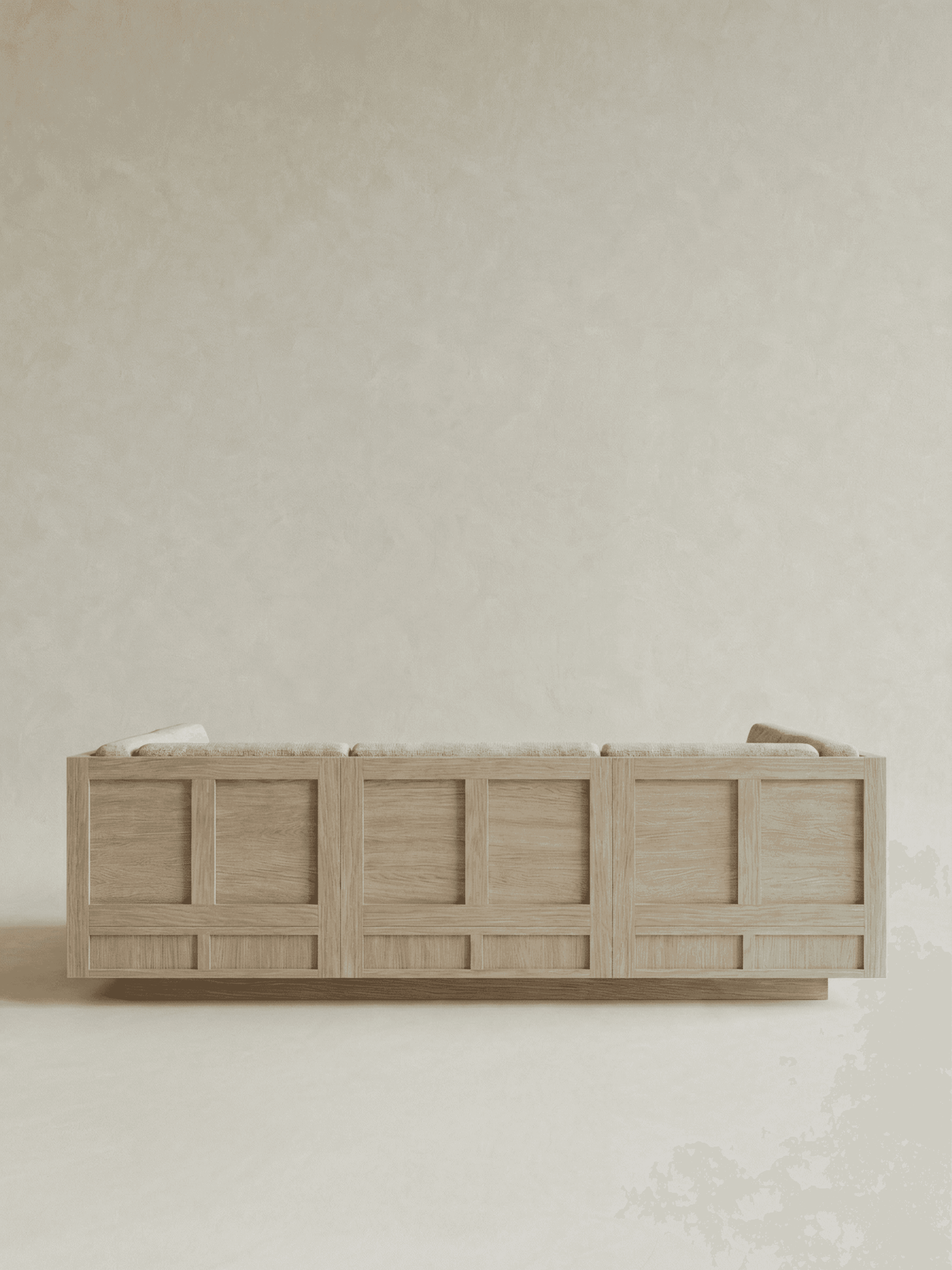 ROWE is a study in authority, white oak shaped through the disciplined language of classic millwork: panelling, plinths, and clean architectural proportion. Each piece carries the familiarity of inherited interiors, edited into a contemporary register with low-slung silhouettes, softened edges, and generous planes that let the material lead. The detailing is deliberate rather than decorative: rhythmic frame lines, grounded bases, and a built-in sense of permanence translated into furniture. ROWE is designed to live like an heirloom from day one, enduring, composed, and made to gather time.