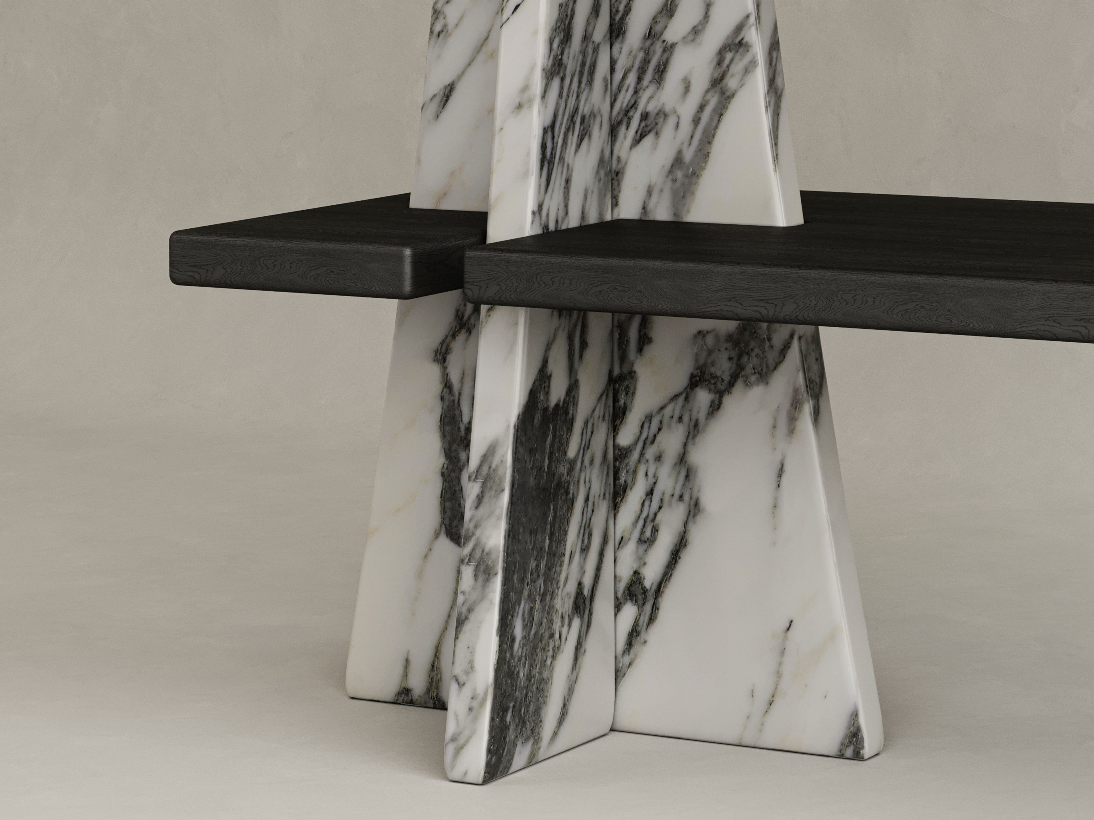 Black stained oak and Arabescato Carrara
